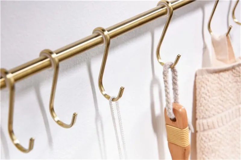 Ванная комната халат ряд крючков пальто дверная вешалка настенный ногтей перфорированные башня стеллаж для выставки товаров Кухня, крючки, станок и банных принадлежностей золотоChrome 60 см