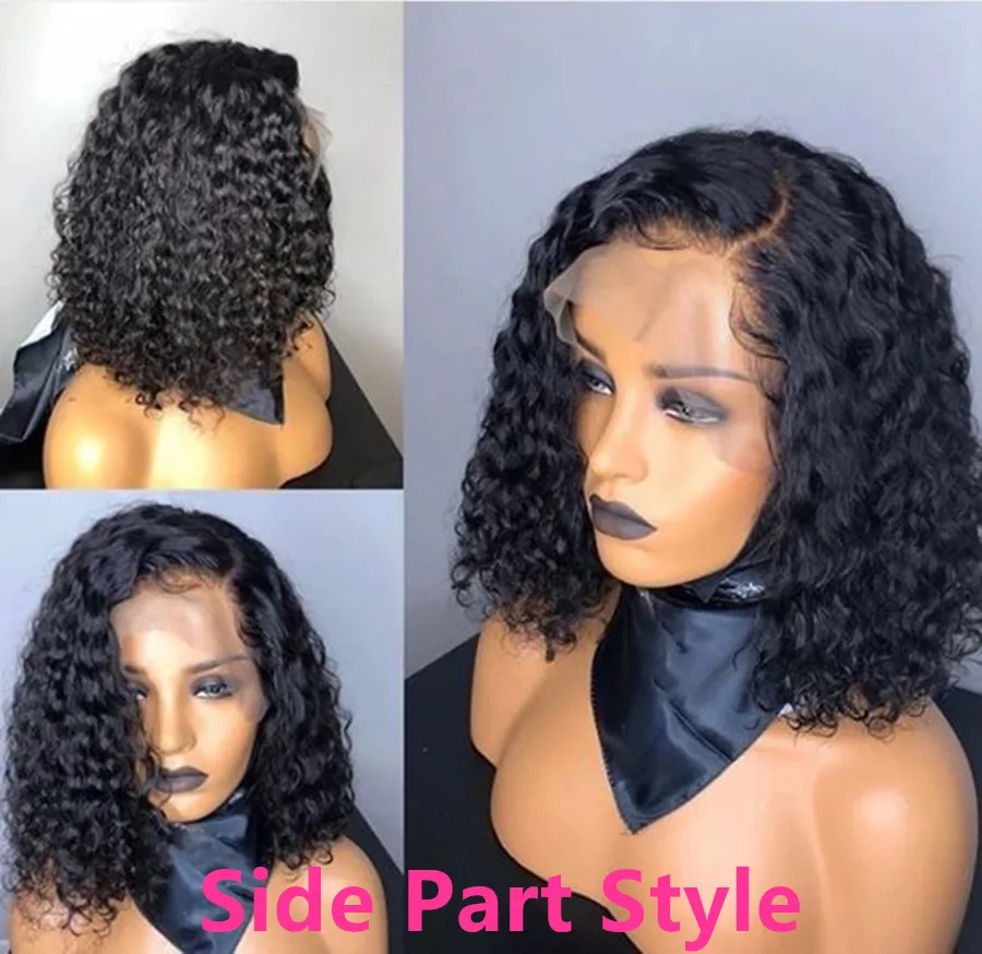 Парик из коротких кудрявых человеческих волос, парик с вырезами, предварительно выщипанный парик из кудрявого Боба с детскими волосами, 13х6, парик на фронте шнурка, Вау, королева, индийские волосы Remy