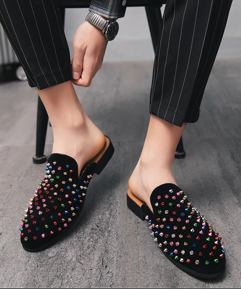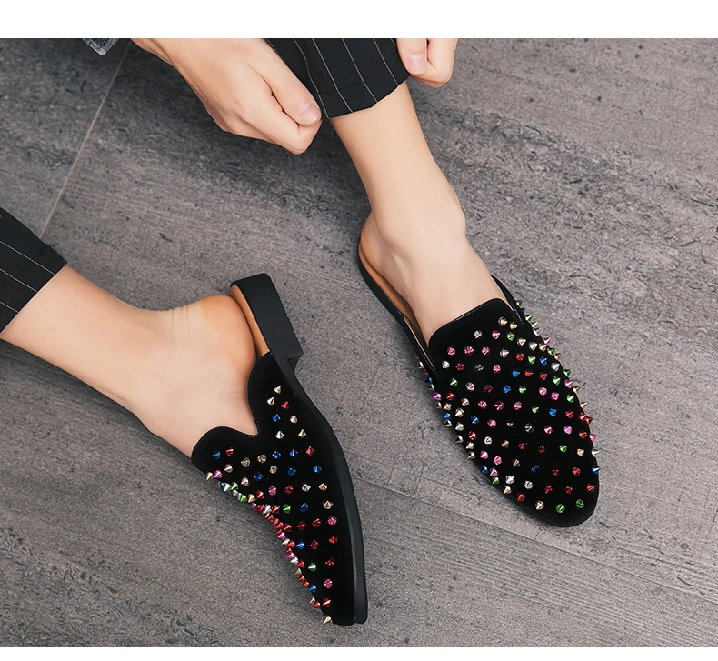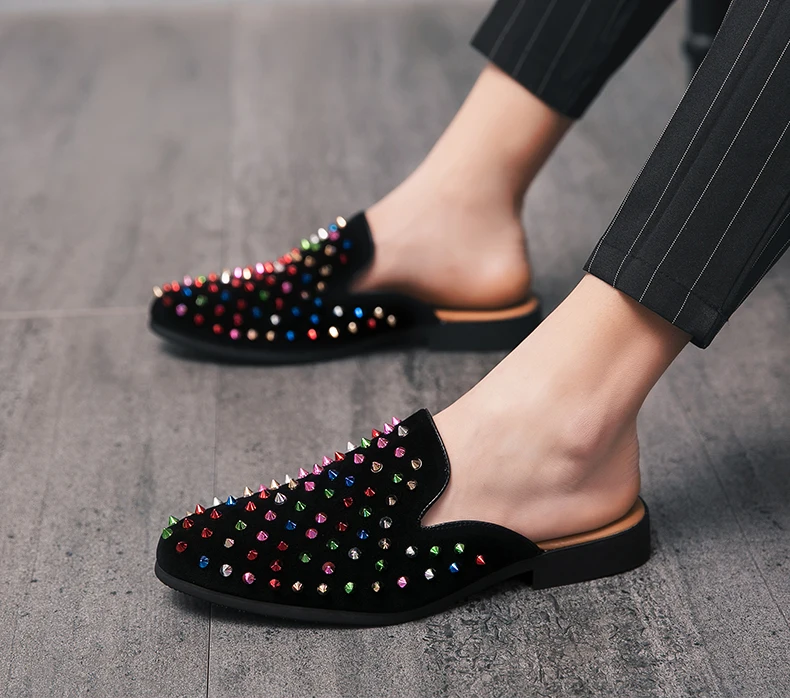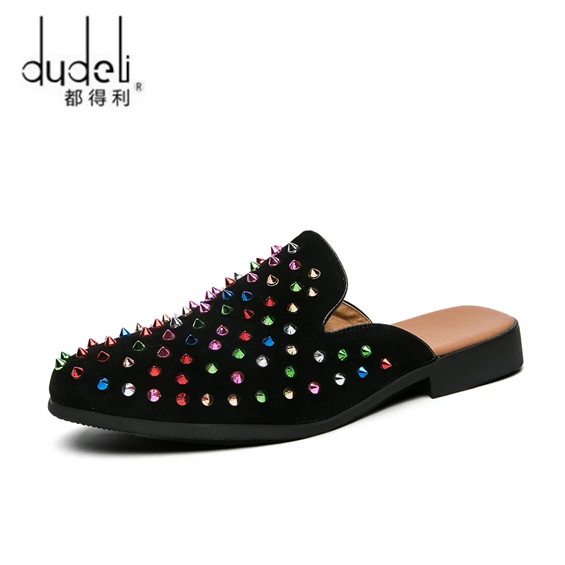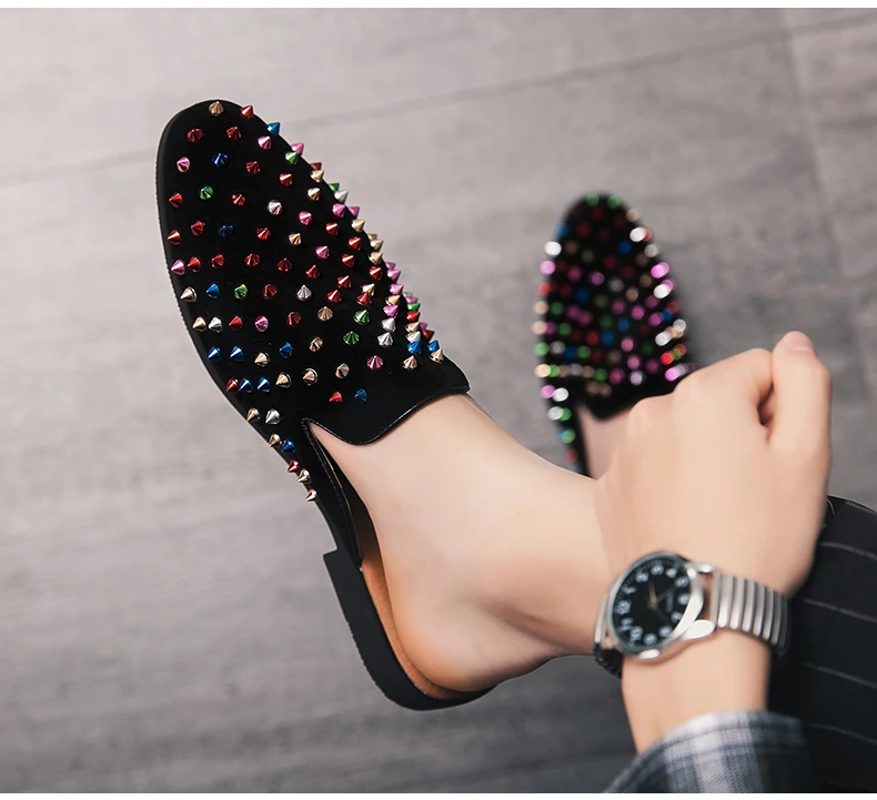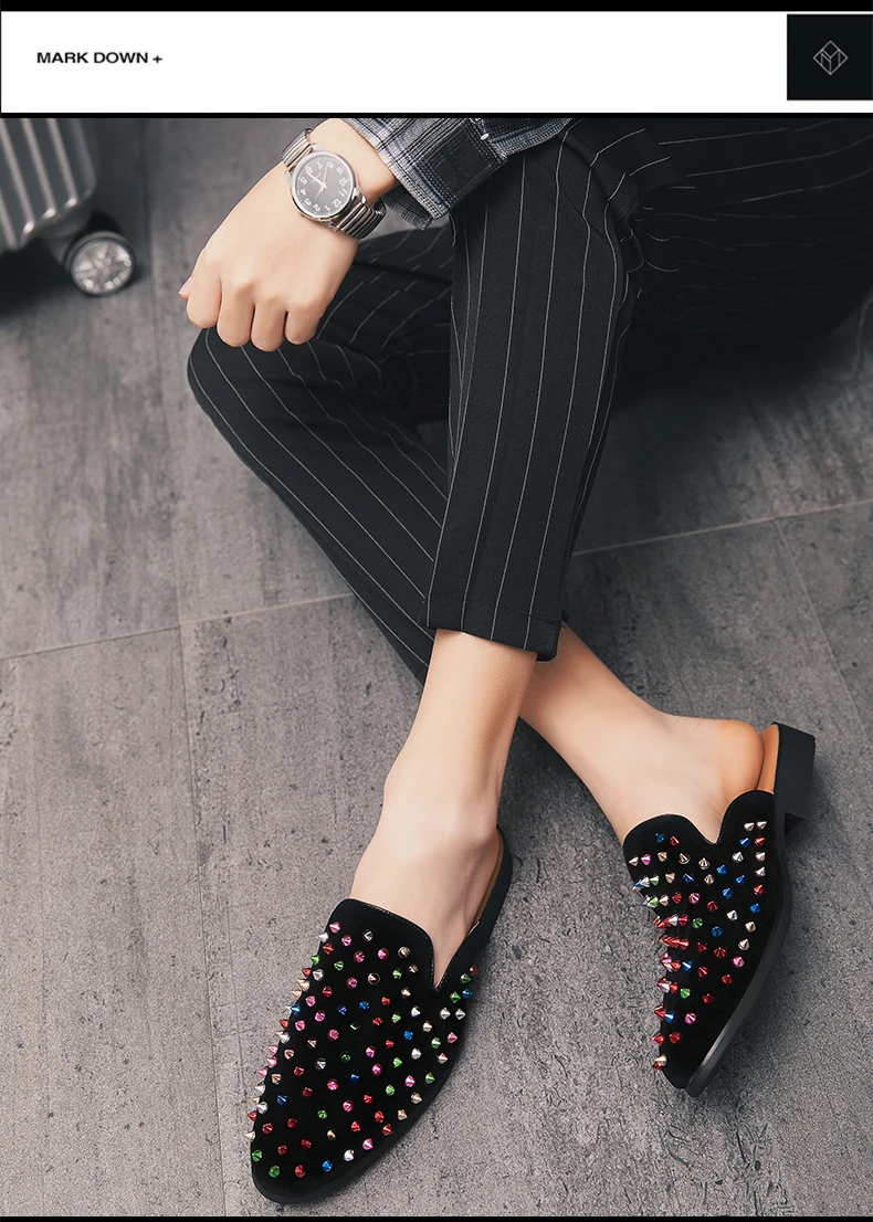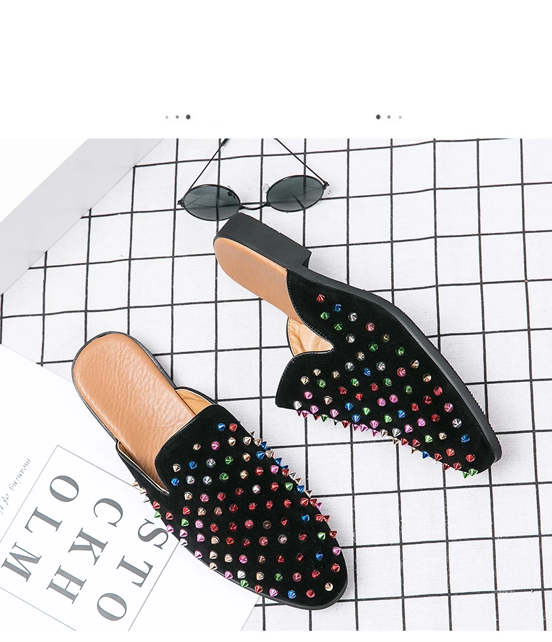 Туфли мужские повседневные, Мокасины, без застежки, с заклепками, модные лоферы, повседневная обувь для вечеринки