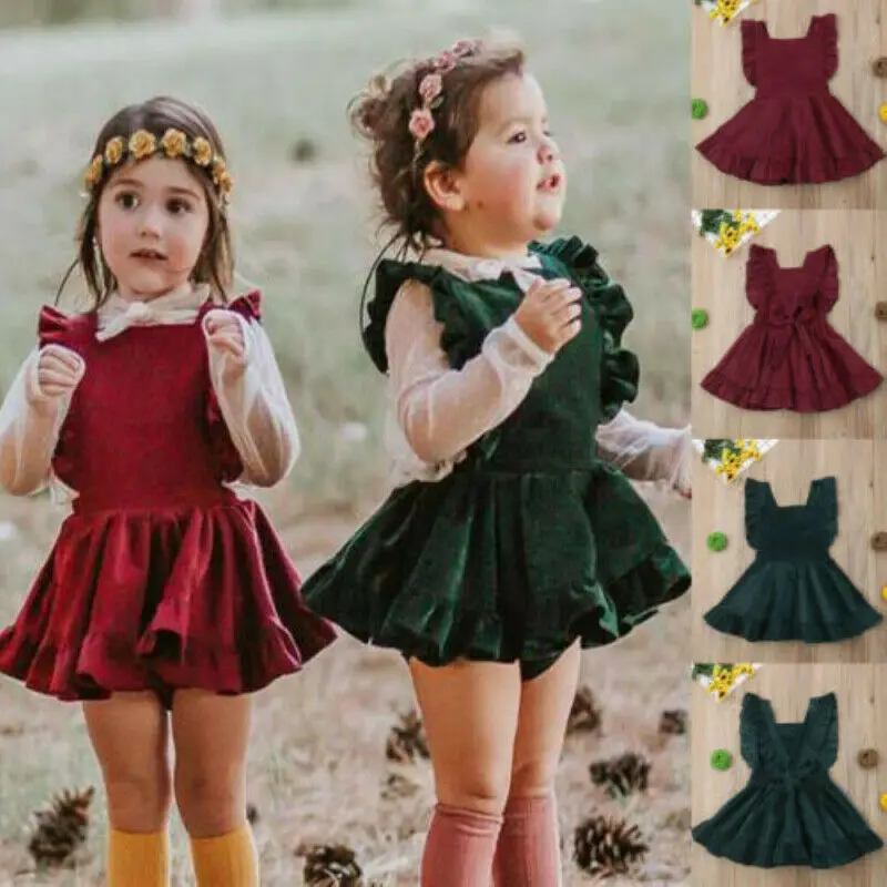 Вельветовое платье Pudcoco для маленьких девочек, без рукавов, с оборками, вечерние летящим рукавом, с широким подолом, Тюлевое платье-пачка для новорожденных