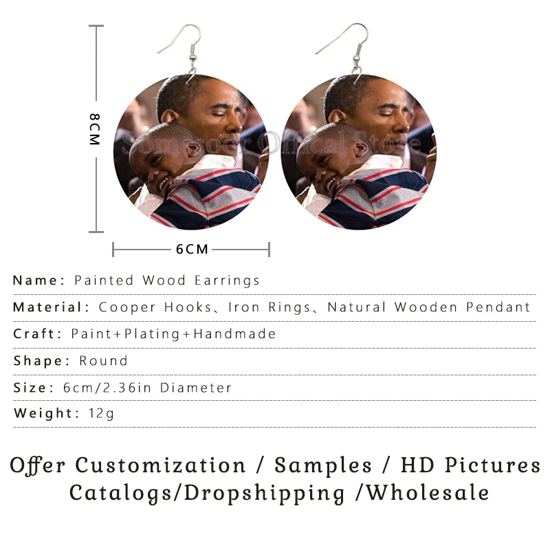 SOMESOOR женские деревянные висячие серьги черного лидера Обамы Пер...