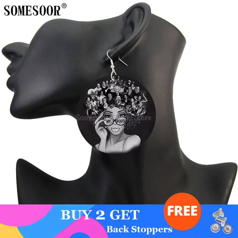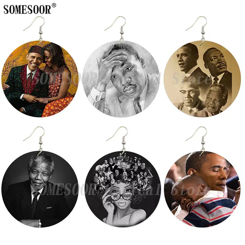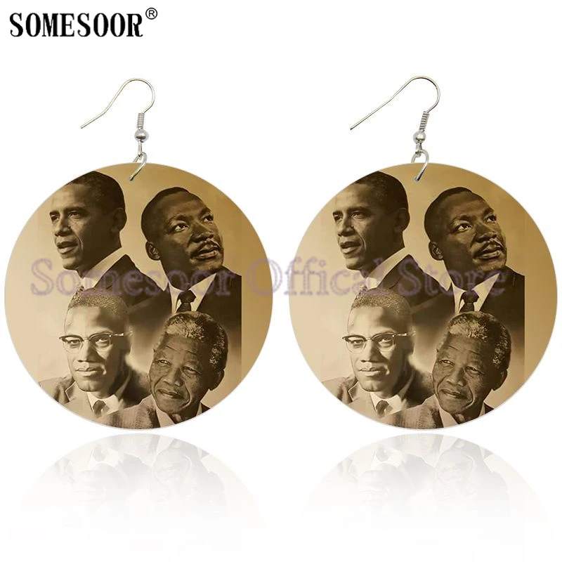 SOMESOOR Black History Heros афроамериканские деревянные серьги-подвески Обама, Манделы, Мартин, Лютер, Кинг, искусство, роспись для женщин, подарки
