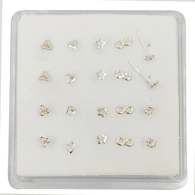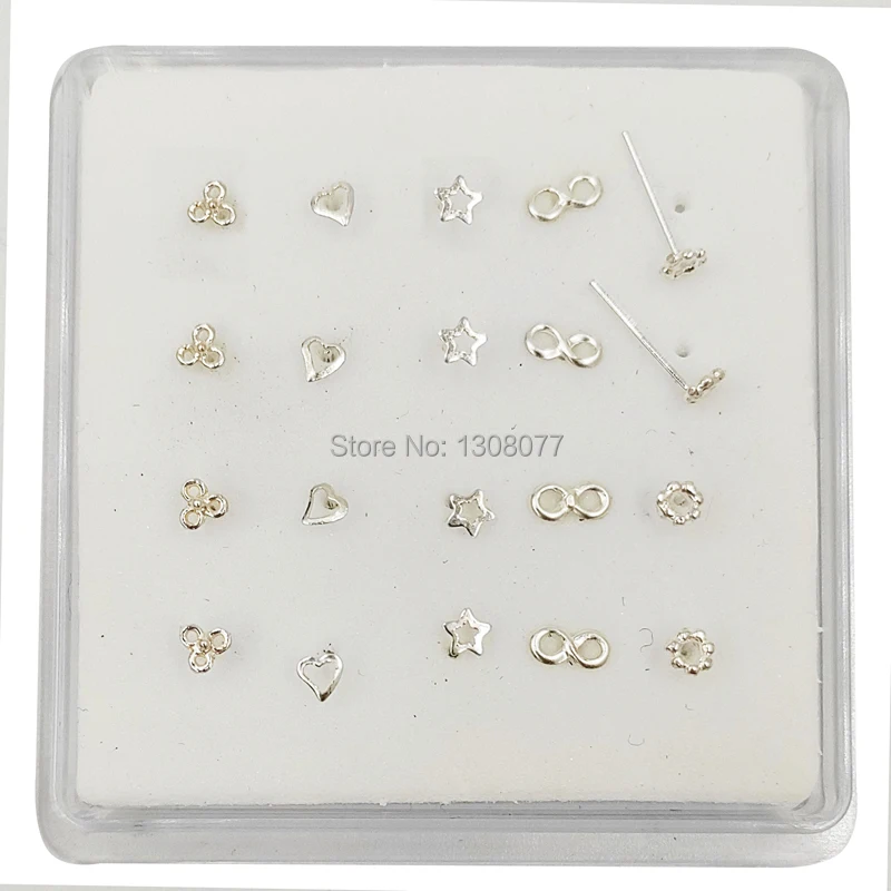 Смешанный дизайн штырь носа 925 пробы серебро, не вызывает аллергии, свободного дыхания и здорового сна пирсинг комплект ювелирных изделий из 20 штук