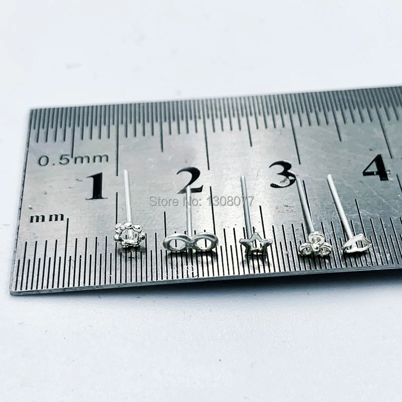 Серьги-гвоздики из серебра 100 пробы для пирсинга носа, 1,2 шт.лот,...