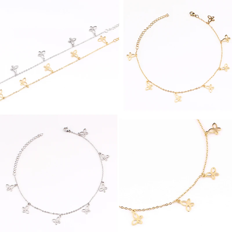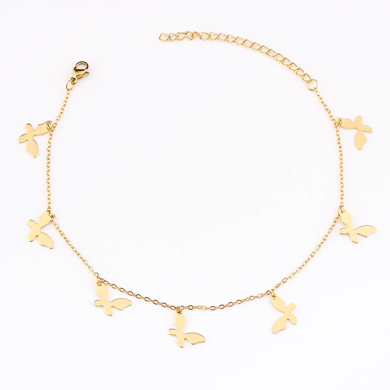 Новые богемные бусины, Золотая круглая кисточка, простой кулон-бабочка, женский пляжный браслет на ногу без ног, блестящая цепочка для ног
