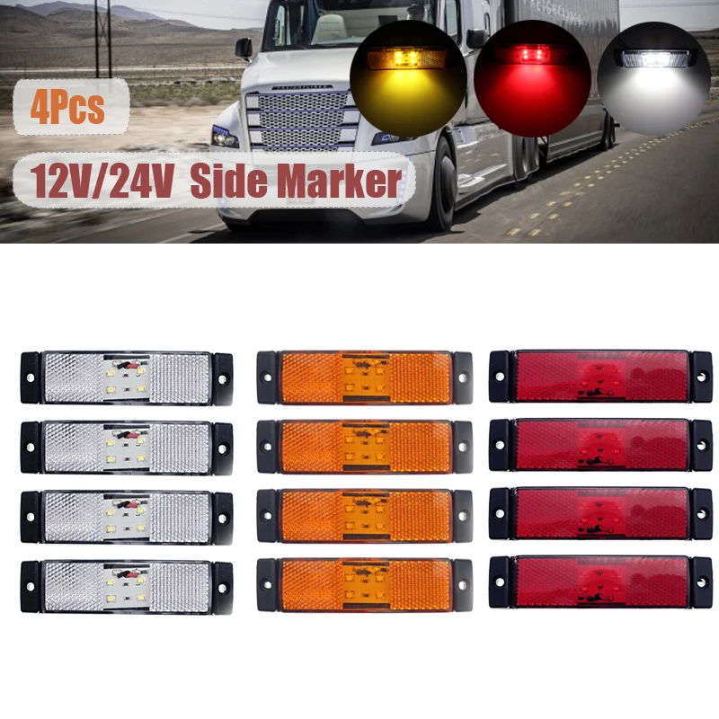 ВнешПредупреждение ющий индикатор 4x12 В, 24 В, 4-светодиодные, боковые, габаритные фонари, указатель поворота, габаритный фонарь для прицепа, грузовика, фургона