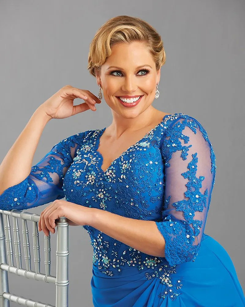 Элегантные Синие серебряные платья для матери невесты с длинным рук...