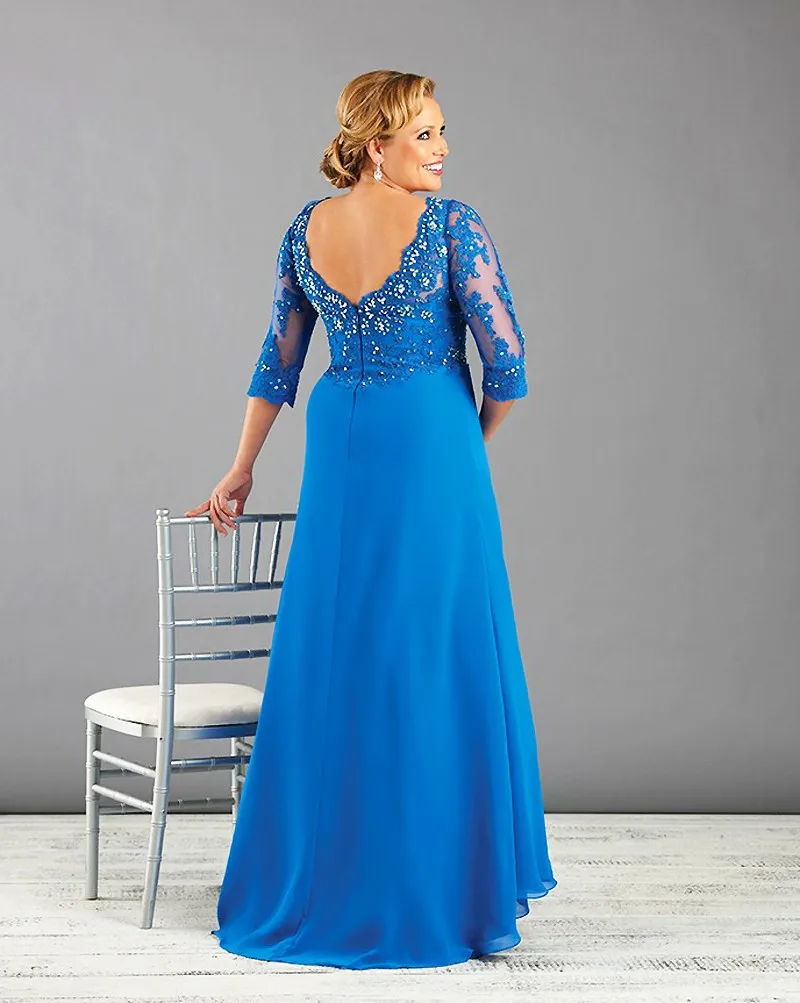 Женское шифоновое платье для матери невесты, темно-синее кружевное платье с полурукавами и V-образным вырезом, официальное платье для свадебной вечеринки
