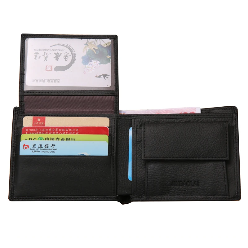 Мужской кошелек из 100% натуральной кожи, короткий черный кошелек и...