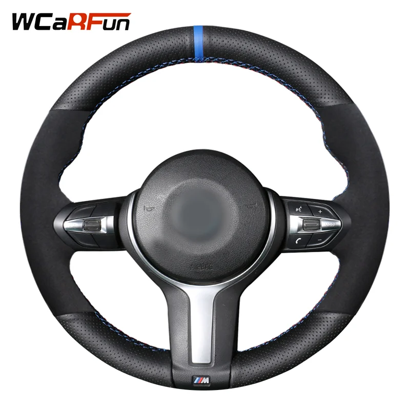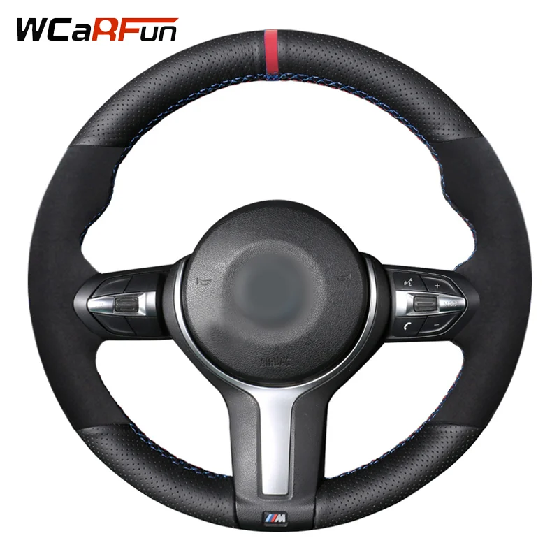 WCaRFun черная замшевая кожаная Автомобильная накладка на руль для BMW F30 F33 F87 M2 F80 M3 F82 M4 M5 F12 F13 M6 F85 X5 M F86 X6 M Sport