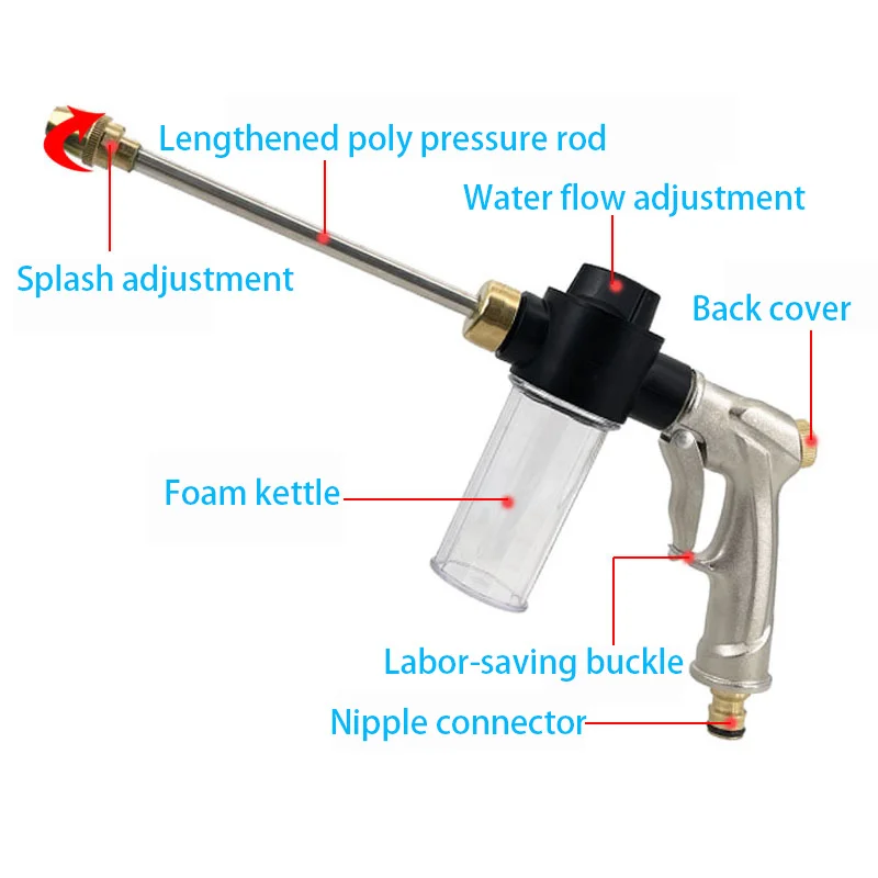 товар пришел раньше ожидаемого срока, упакован хорошо в пупырку, полностью соответствует описанию, качественные металлические штуцера и пистолет. Есть регулировка на пистолете струя-рассеиватель, но все зависит от давления воды, у меня 3 атм., этого достаточно сбить пыль с авто , да и просто помыть забор, брусчатку, компактный, я доволен! о
