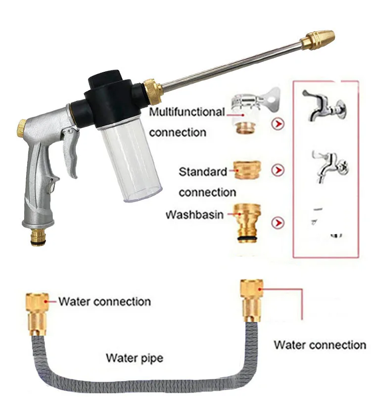 Многофункциональный шланг для водяного пистолета, садовый шланг, выдвижной шланг волшебный, резиновый, Европейский шланг высокого давления для автомойки и металлический распылитель