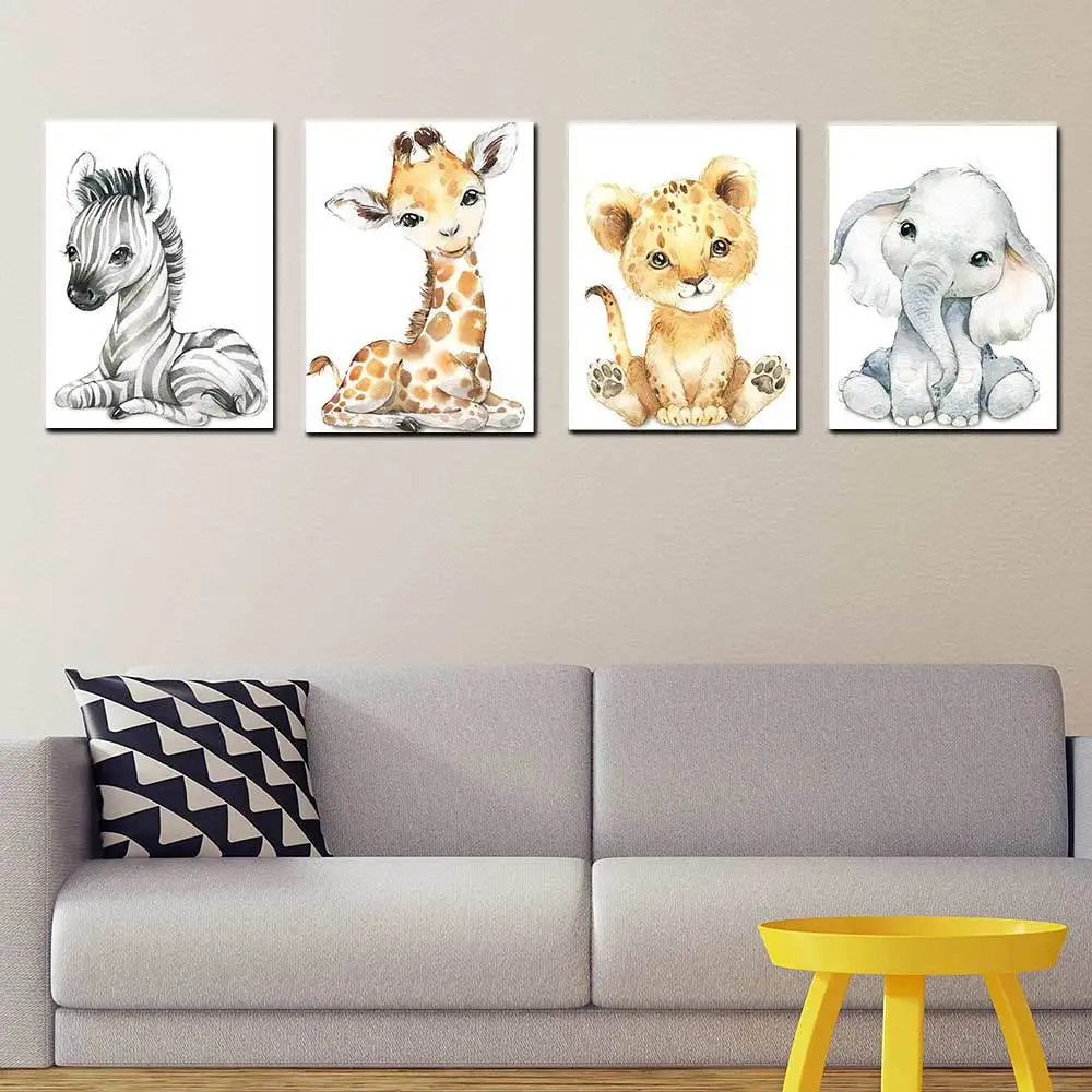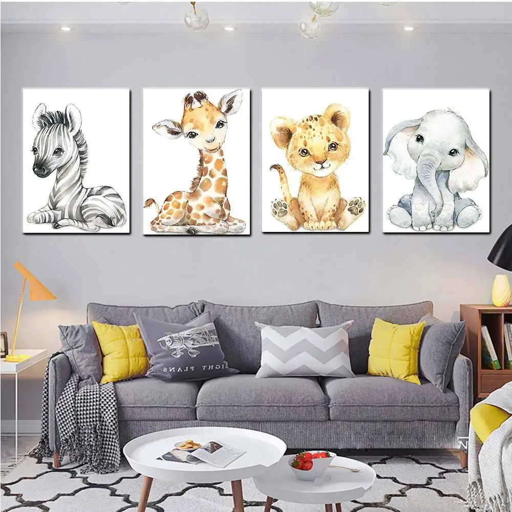 Картина на холсте с изображением животных в скандинавском стиле, милый зебра, жираф, Лев, слон, Постер для детской комнаты