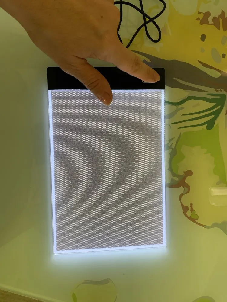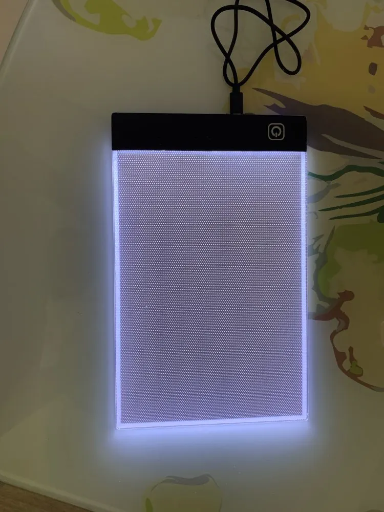 Яркая и лёгкая доска- подсветка которая упростила мне работу над моими рисунками! Упакована была отлично и пришла очень быстро! Единственное, мне хотелось размер А4, но продавец на момент возврата уже отправил товар, это моя ошибка, которая ничего не стоит- А5 ничуть не хуже и подсвечивает почти весь листок!)