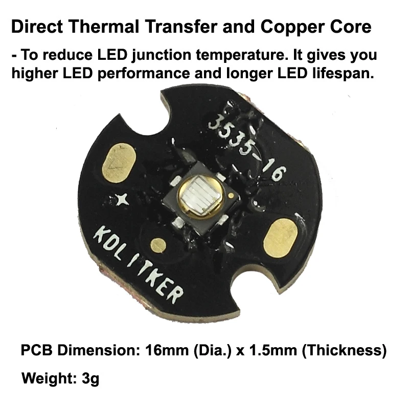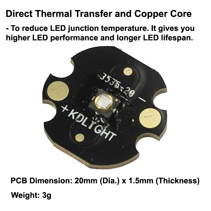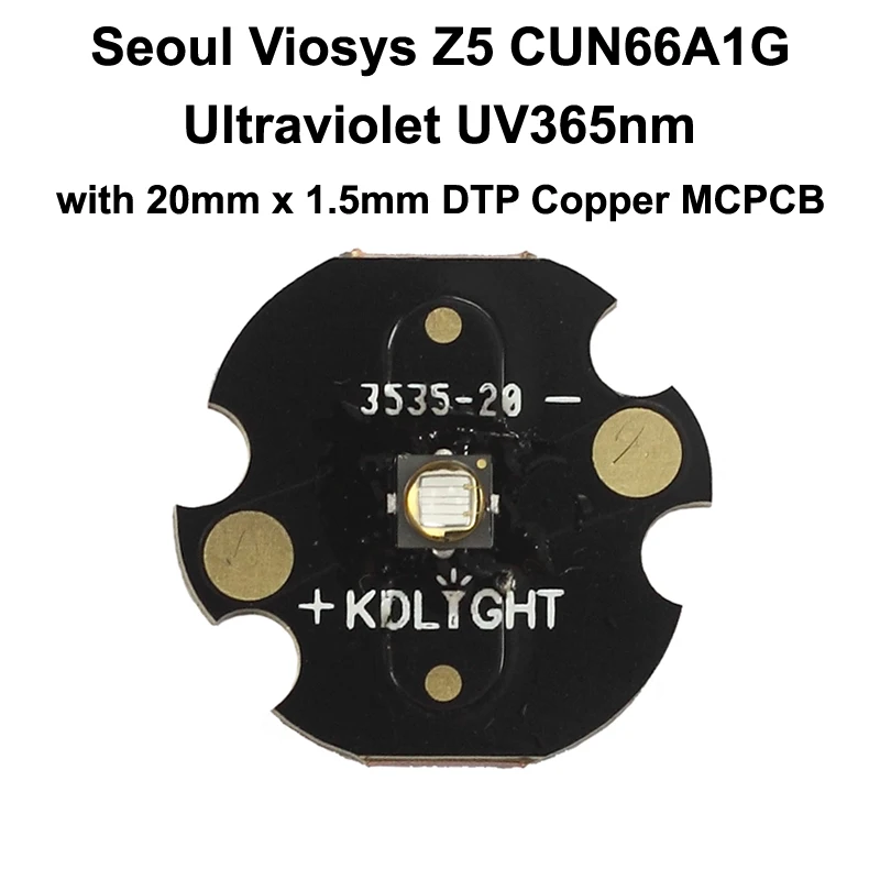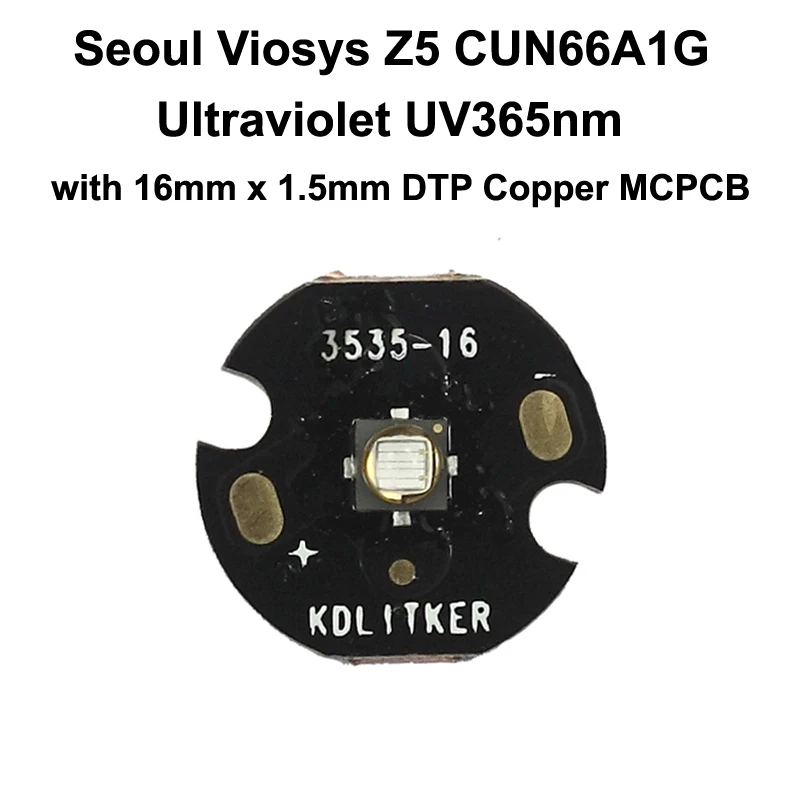 5 Вт Сеульский Viosys UV 365nm Z5 серия CUN66A1G Ультрафиолетовый светодиодный излучатель с KDLITKER DTP медь MCPCB - 1 шт.