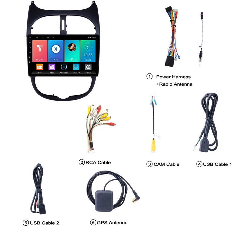 Автомагнитола Магнитола Мультимедиа автомобиля Автомобильный мультимедийный плеер для Peugeot, стерео-система под управлением Android 206, с GPS Навигатором, Wi-Fi, Bluetooth, FM-радио, типоразмер 2 Din