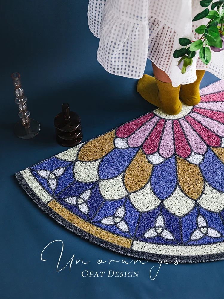 Коврик для входной двери с узором мандала, полукруглый, искусственный коврик для передней двери, низкопрофильный коврик для наружной двери, легко чистится, коврики для входной двери