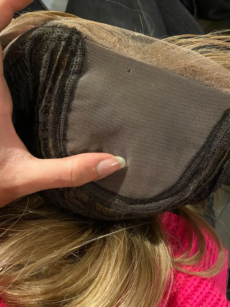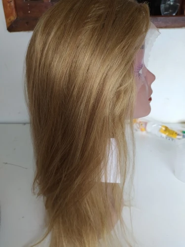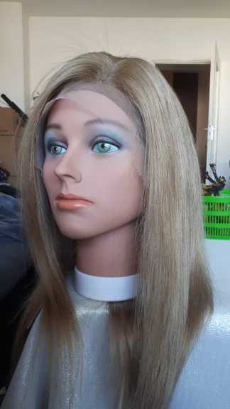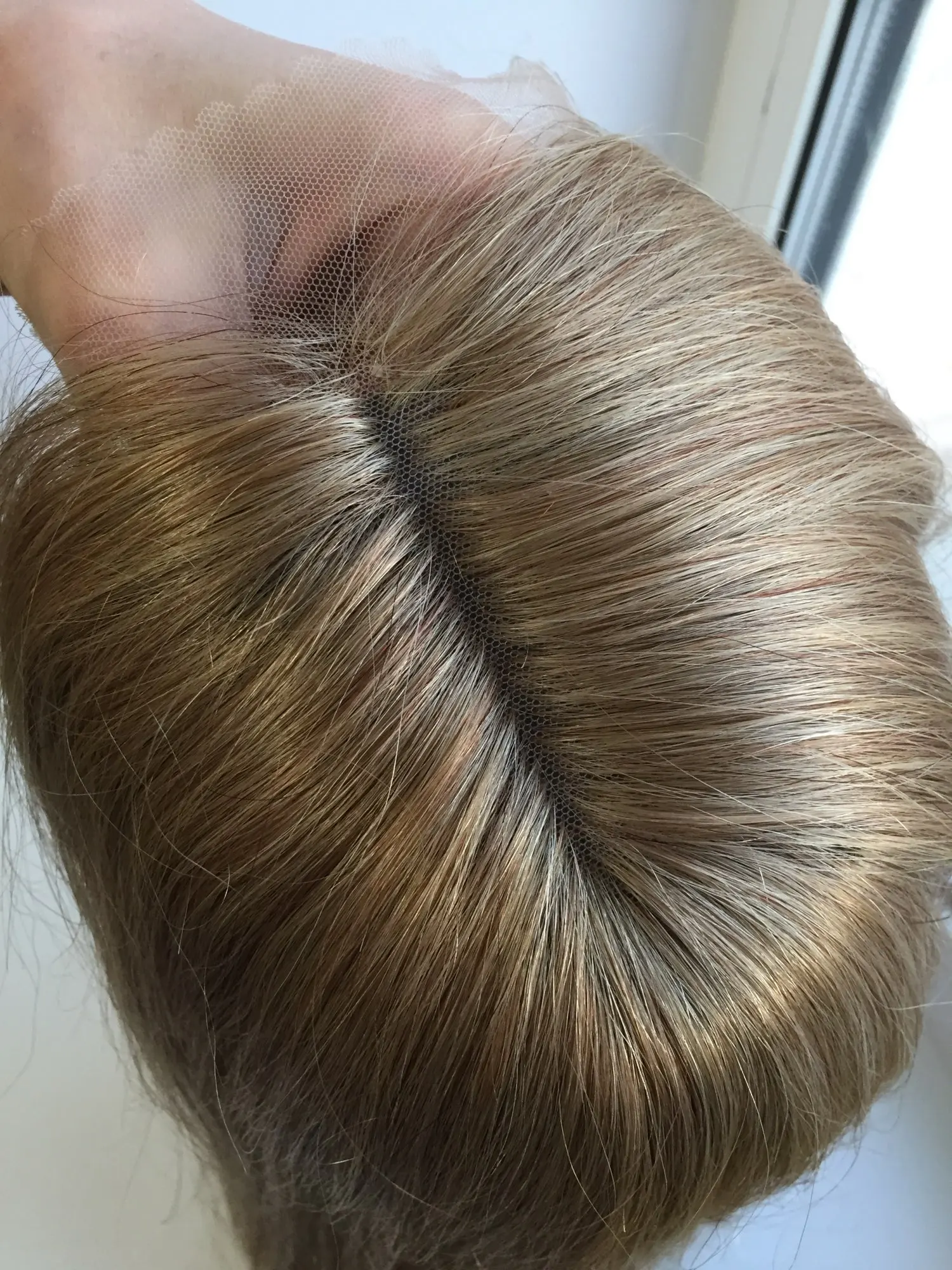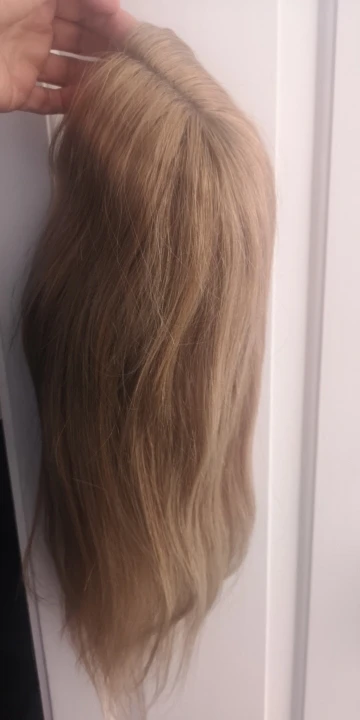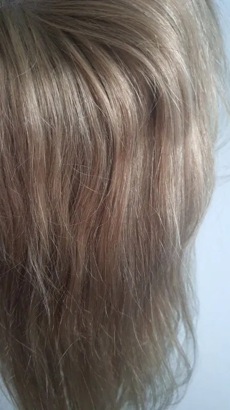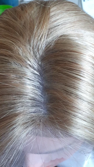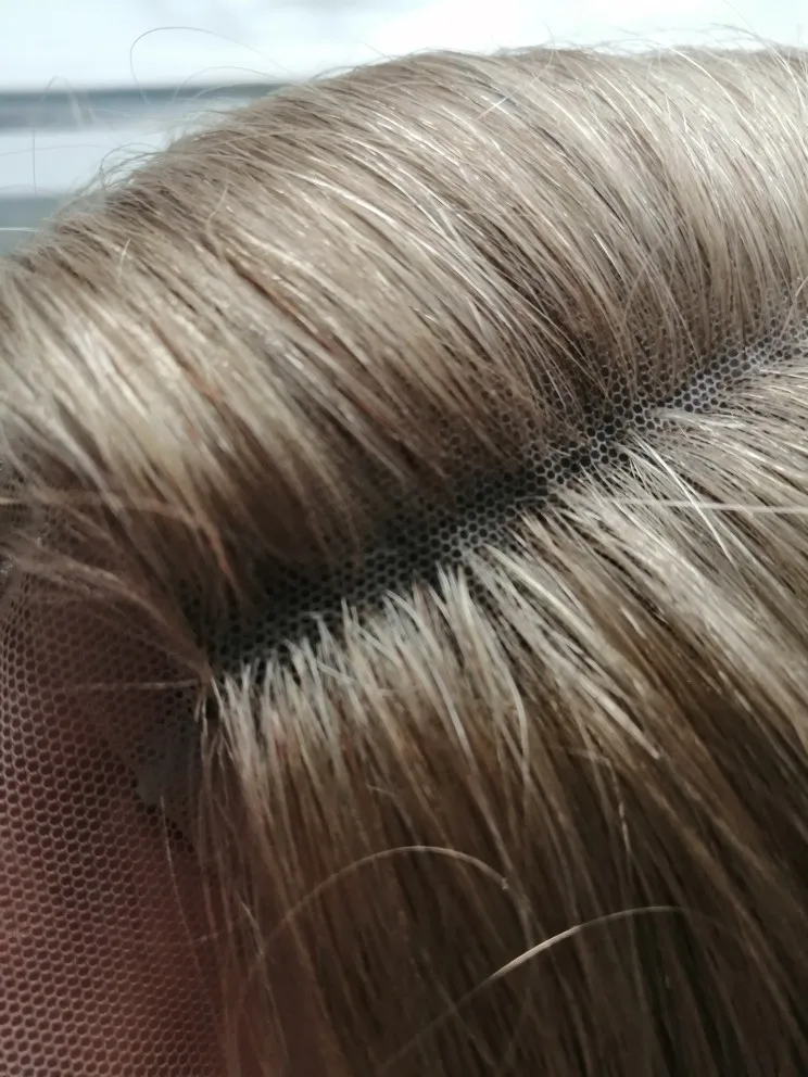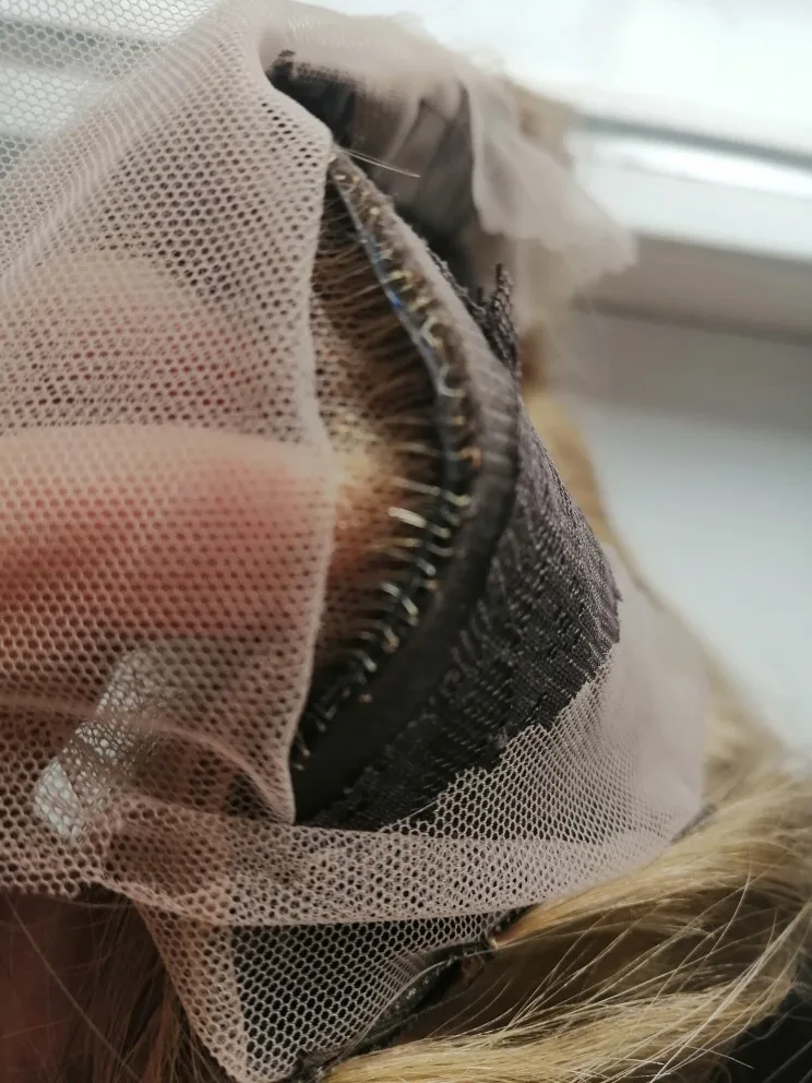 Хочу предостеречь от заказа этого парика. Начну с плюсов : волос довольно густой, небольшая шапка, любителям тёплых оттенков может понравиться цвет, быстрая доставка. На этом все. Теперь к минусам: 1)Парик для носки в жизни категорически не подойдёт. Сетка на чёрном прорезиненном картоне(который встроен в лобную часть) видна за километр. Всё ваши собеседники без труда её увидят! Картон этот не убрать, так как волосы ПРОШИТЫ ПРЯМО В НЕГО. Поэтому ничего переделать невозможно. 2)Сетка спереди не выполняет своей функции так как линия роста все равно будет видна из - за этого грубого чёрного куска картона. Даже бейби хэир не прикроют этот ужас. Поэтому парик Вам придётся носить строго в прилизанном проборе, но даже так очень заметен этот картон в линии роста. 3)Цвет очень тёплый, слегка медный. Блонд ближе к русому. На любителя, так скажем. Кому - то может и подойдёт. 4) Продавец пытался обмануть, просил поставить 5 звезд, а потом он вернёт часть денег. Естественно отказалась.