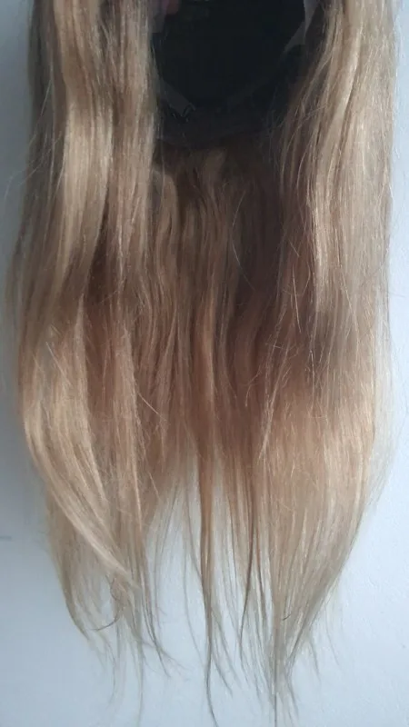 Парик действительно красивый, волосы мягкие, но я не понимаю, что такое Губка на верхней части парика? Он коричневый, и он достаточно заметен. Кроме того, волосы темнеют на концах, но я немного порежу парик в любом случае, так что это не проблема;)