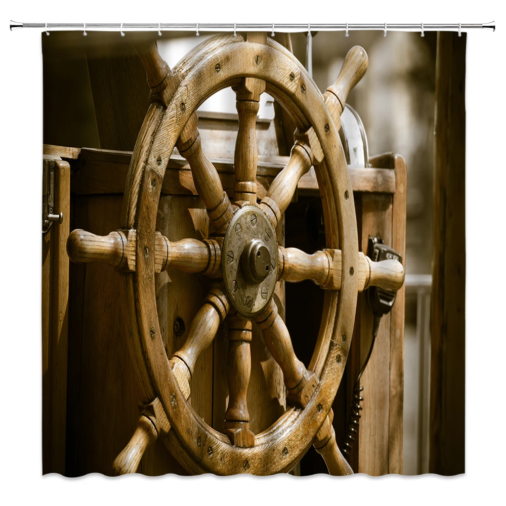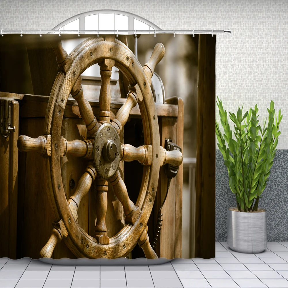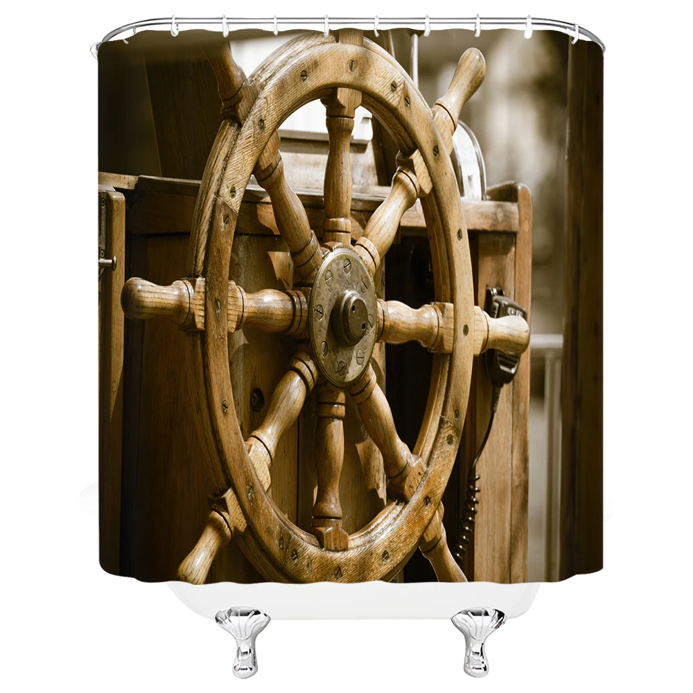 Занавеска для душа в стиле ретро, с деревянным штурвалом, тематический узор парусного корабля, декор для ванной комнаты, набор водонепроницаемых тканевых занавесок для ванной, горячая распродажа