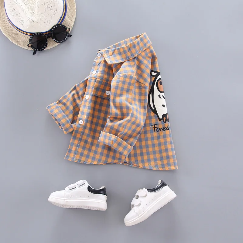 Детская хлопковая рубашка DIIMUU, Повседневная рубашка в клетку с мультяшным принтом, для маленьких мальчиков, с изображением героев мультфильмов, одежда для малышей