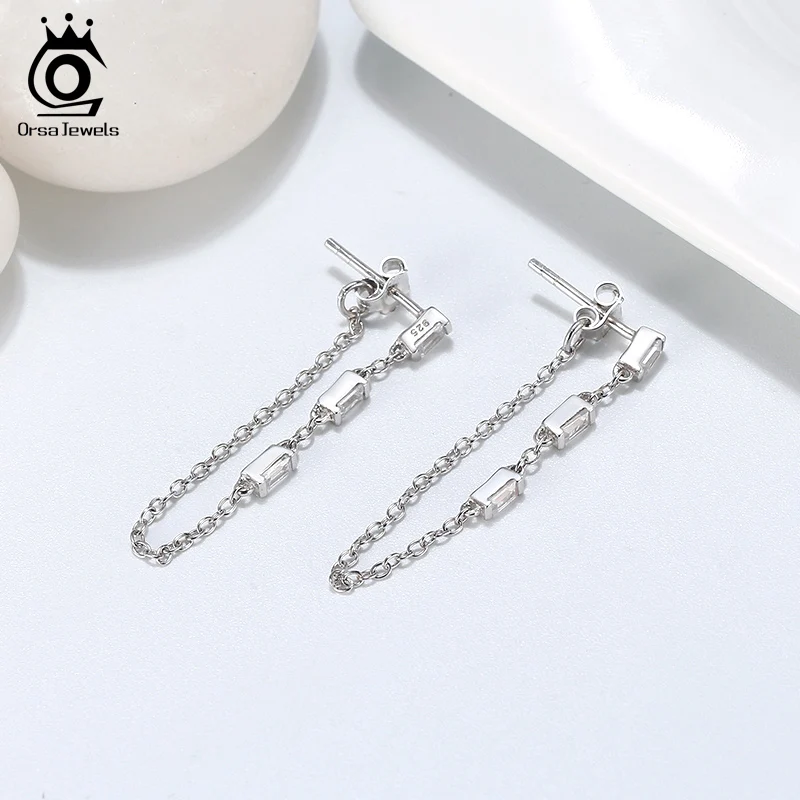ORSA JEWELS, Настоящее серебро 925 пробы, серьги, модная длинная линия, висячие серьги, Женские Романтические ювелирные изделия для женщин, SE224