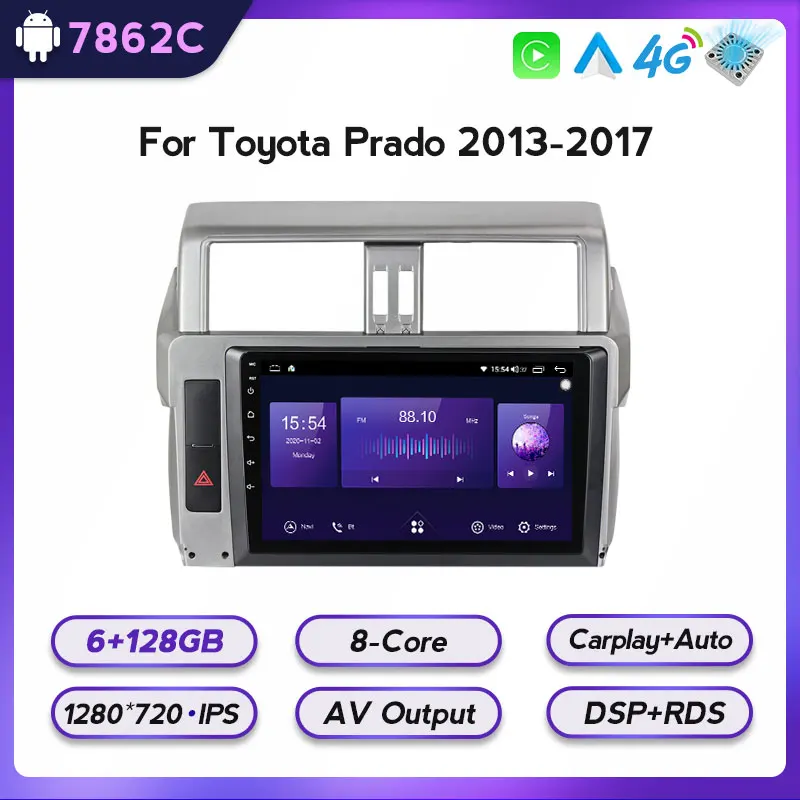 Автомобильная Мультимедийная система Android 11 6 + 128G для Toyota LAND CRUISER PRADO 150 2013-2017, охлаждающий вентилятор DSP carplay с Wi-Fi и голосовым управлением