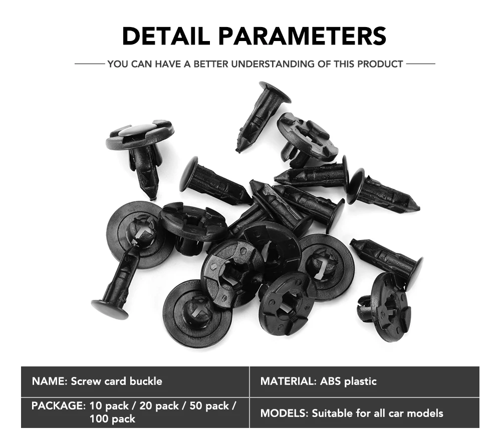 Абсолютно новые и высококачественные заклепки для быстрого и постоянного крепления. Широко используется для автомобильного крыла, бампера, двери или другой поверхности автомобиля. Эти заклепки изготовлены из пластика