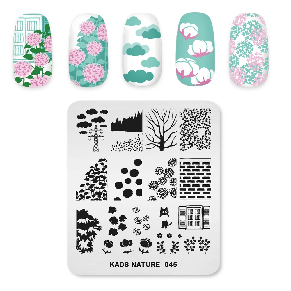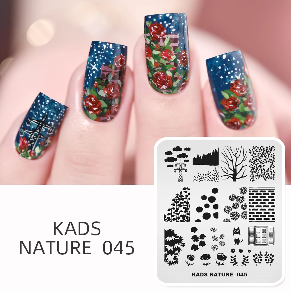 Трафареты для дизайна ногтей KADS Nature 045, трафареты для стемпинга ногтей с рисунком розы, цветов, кота, украшения для творчества