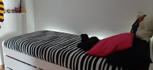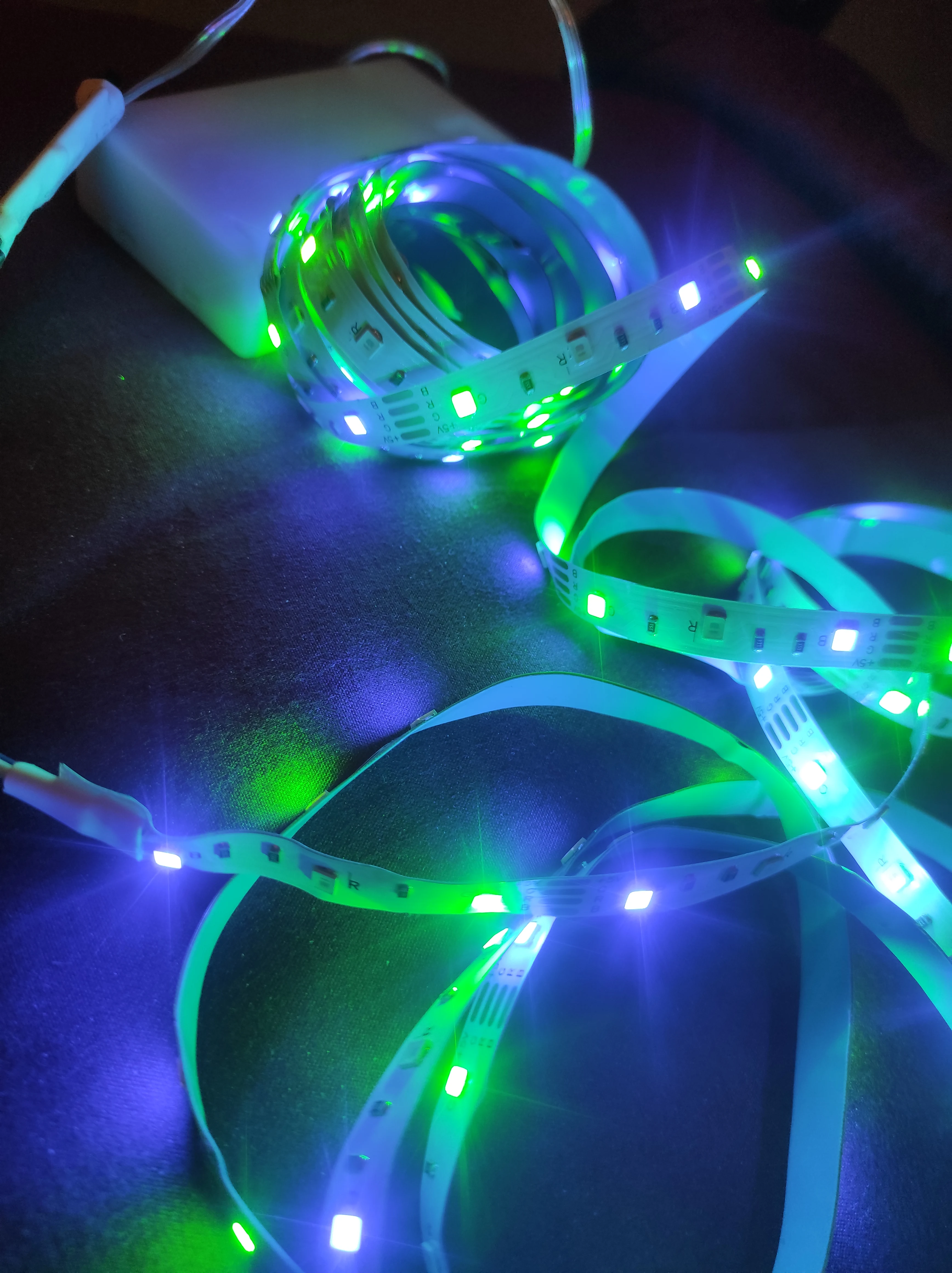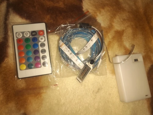 Очень яркая, двусторонняя лента на самом деле хорошая, что стало сюрпризом. Пульт дистанционного управления работает отлично, батареи не включены из-за безопасности доставки. 10/10 за цену! Отличное качество.
