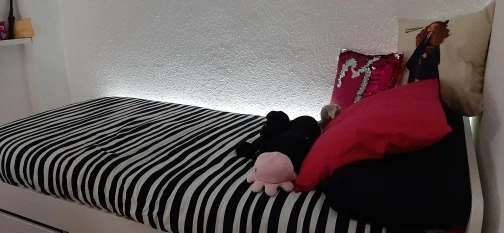 El color es muy brillante. Se pega bien a superficies.Es justo lo que queria para crear la luz de ambiente en el cuarto de mi hija. Sin duda, volveré a comprar y recomiendo al vendedor y al producto al 100%