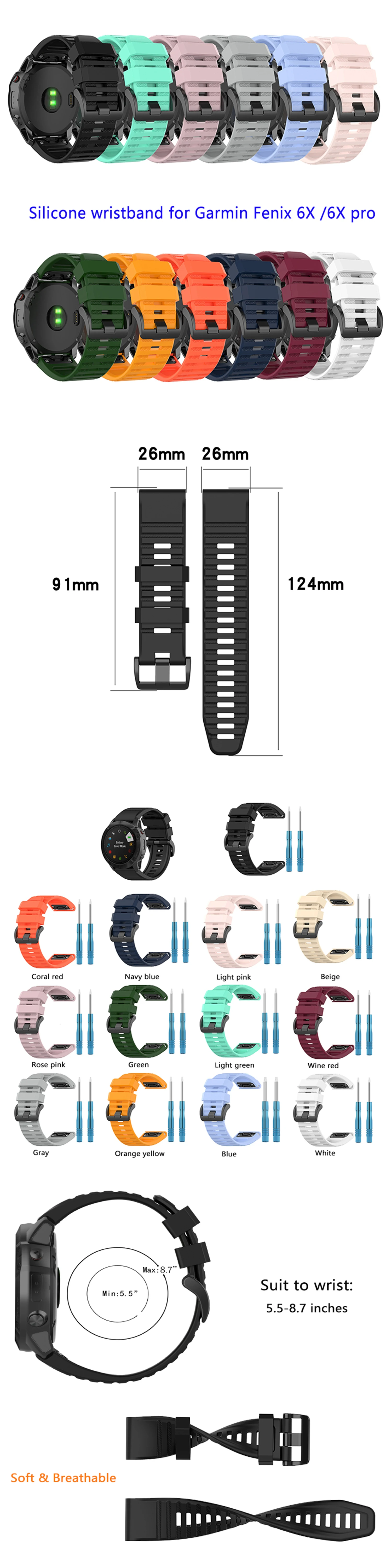 Силиконовый ремешок для наручных часов Garmin Fenix 7X 6X GPS6X PRO5X Sapphire
