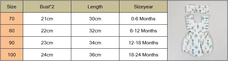 Существует разница в 2–3 см связанная с измерением вручную.Прежде чем купить эту товарную позицию, просим тщательно свериться с таблицей размеров.1 дюйм = 2,54 см Обратите внимание что небольшая разница в цвете считается приемлемой. Это может быть связано с положением источника света и с настройками экрана. Что вы получаете:1 детский комбинезон + 1 повязка на голову