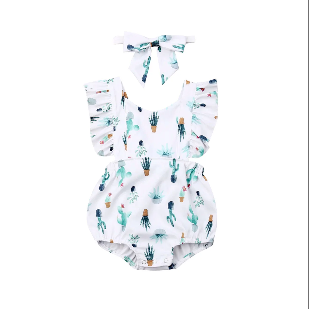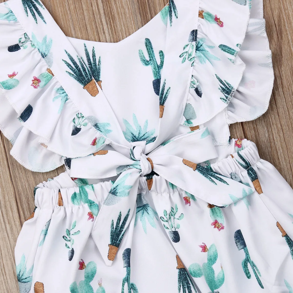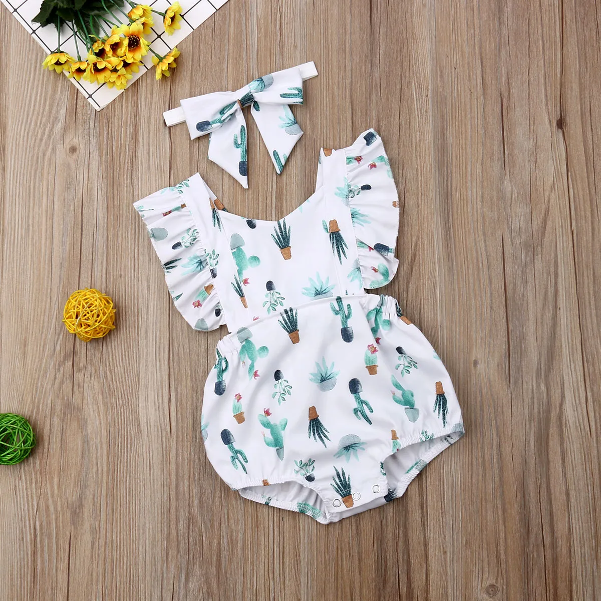 Комбинезон для новорожденных девочек 0-24 мес., комбинезон с оборками и принтом кактуса, летние костюмы, детская одежда
