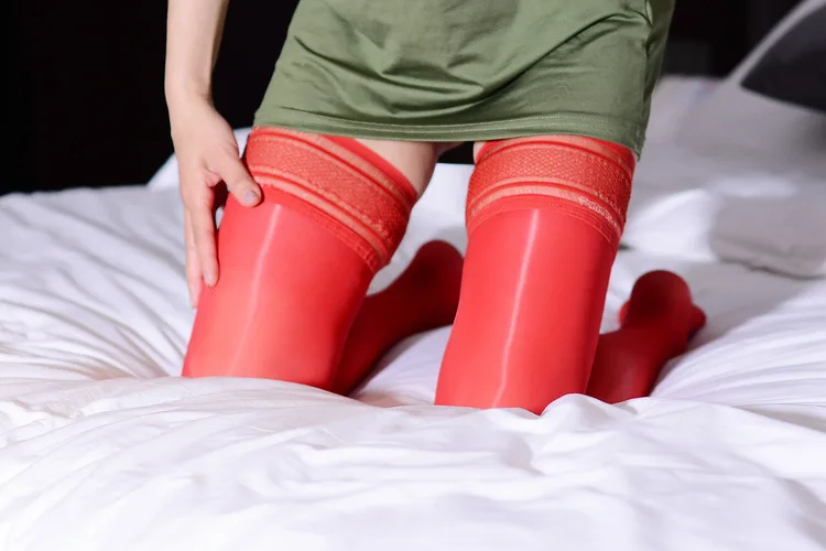 Сексуальные кружевные чулки выше колен в полоску, прозрачные блестя...