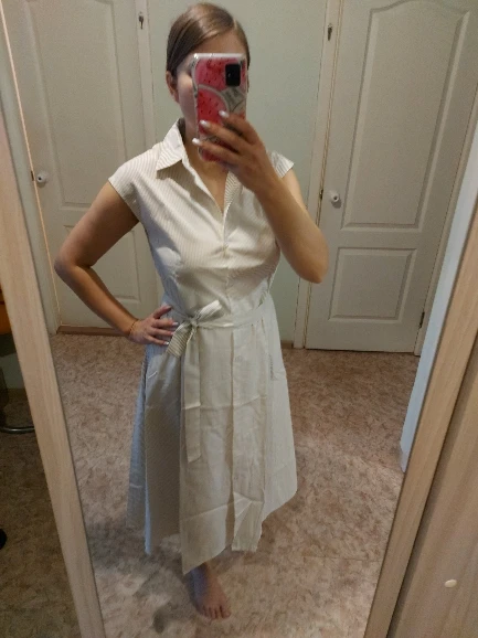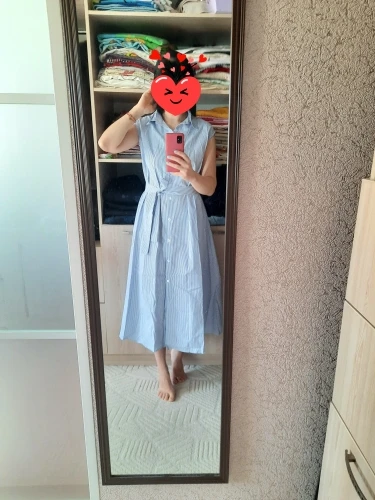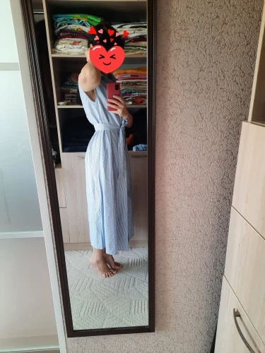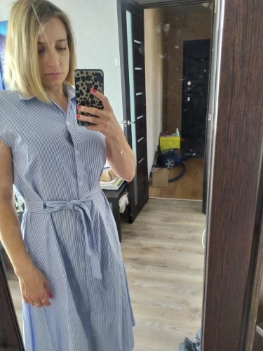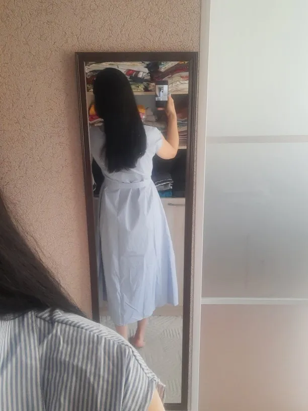 Очень хорошее платьишко. Сшито аккуратно. Правда оно оверсайз, я бы сказала. На российский 46-48 довольно свободно, хотя может это и к лучшему). На лето самое то - легкое, наощупь приятное, хлопок. Продавец положил резинку в подарок. Заказом довольна, продавцу большое спасибо!)