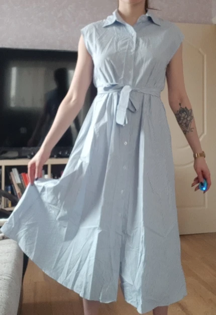 . Отличное платье. В Украину приехало за 25 дней. Продавец положил подарок. Мой рост 164см, размер одежды s. Собиралась обрезать его, но теперь думаю заказать ещё в другом цвете и обрезать, а это оставить длинным. Видела что все переживают о карманах, так вот у меня они на месте, идеально по высоте.