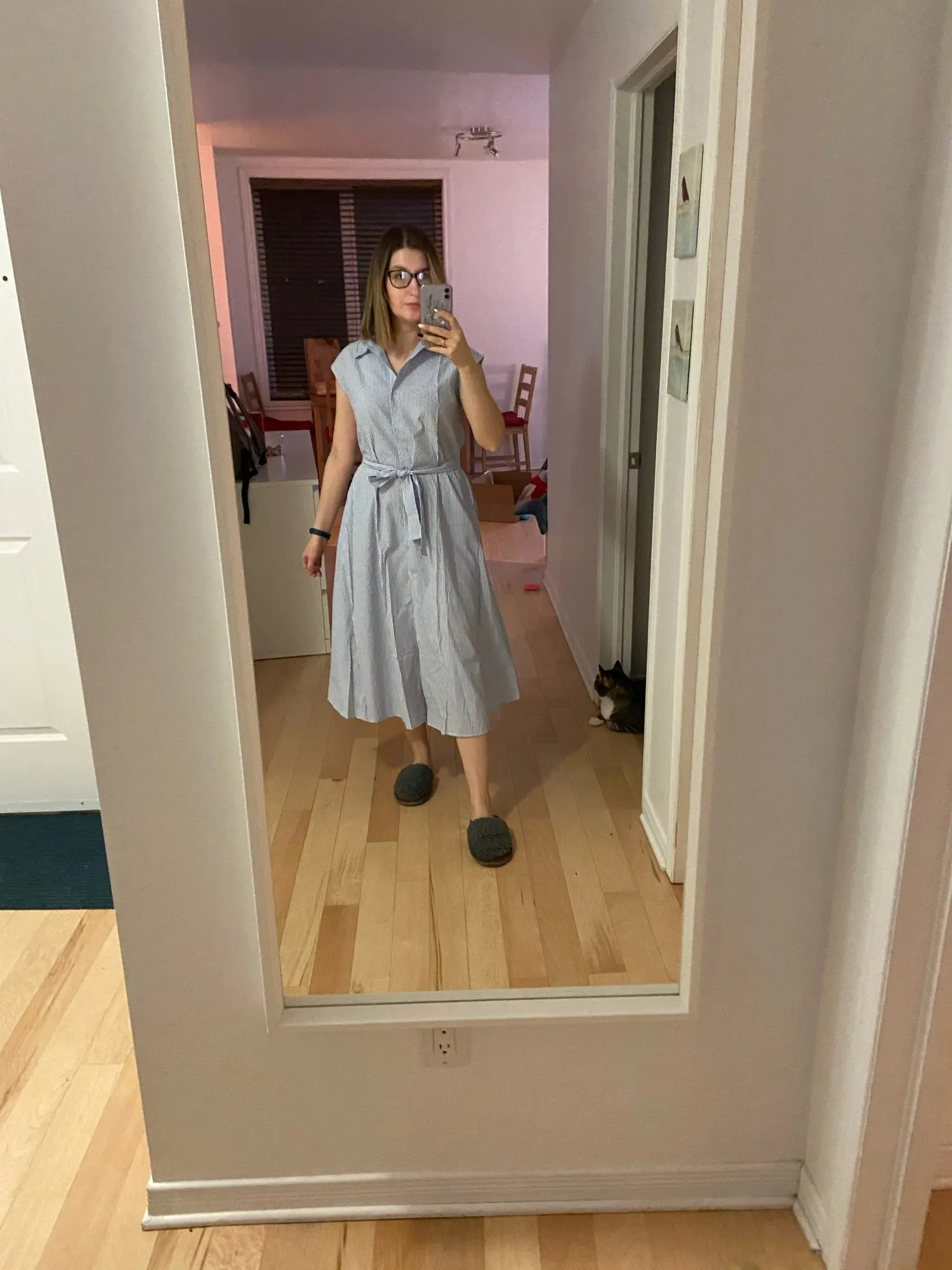 Обожаю это платье. Хорошая резка. Немного великоват вокруг проймы, но хорошо.