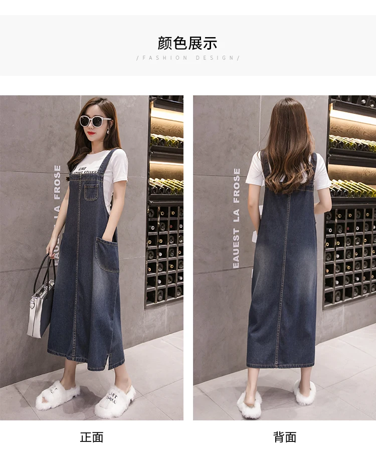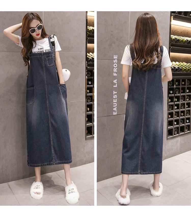 Джинсовое платье с подтяжками для женщин, повседневный Длинный Сарафан большого размера плюс в Корейском стиле на лето, 2020