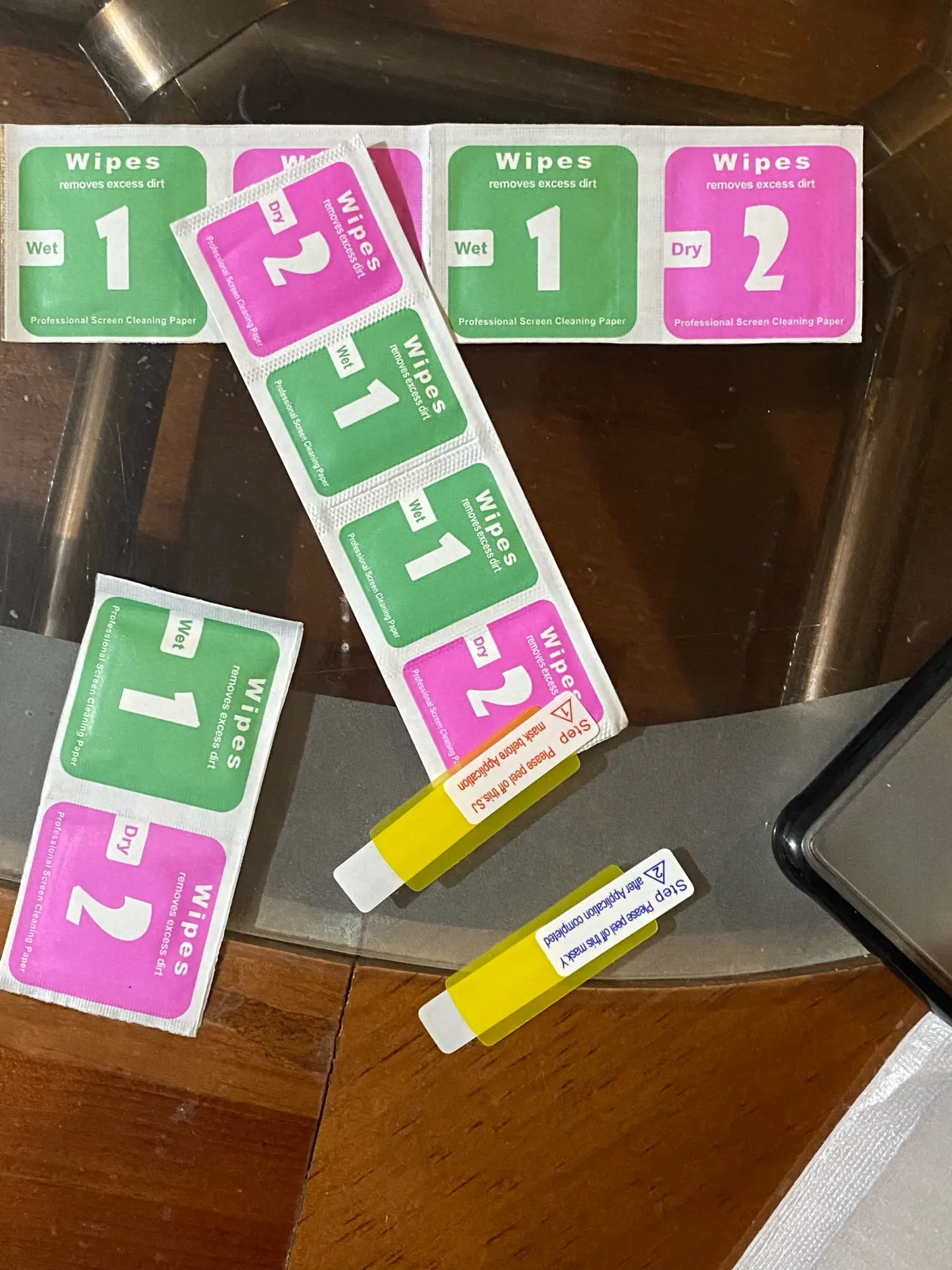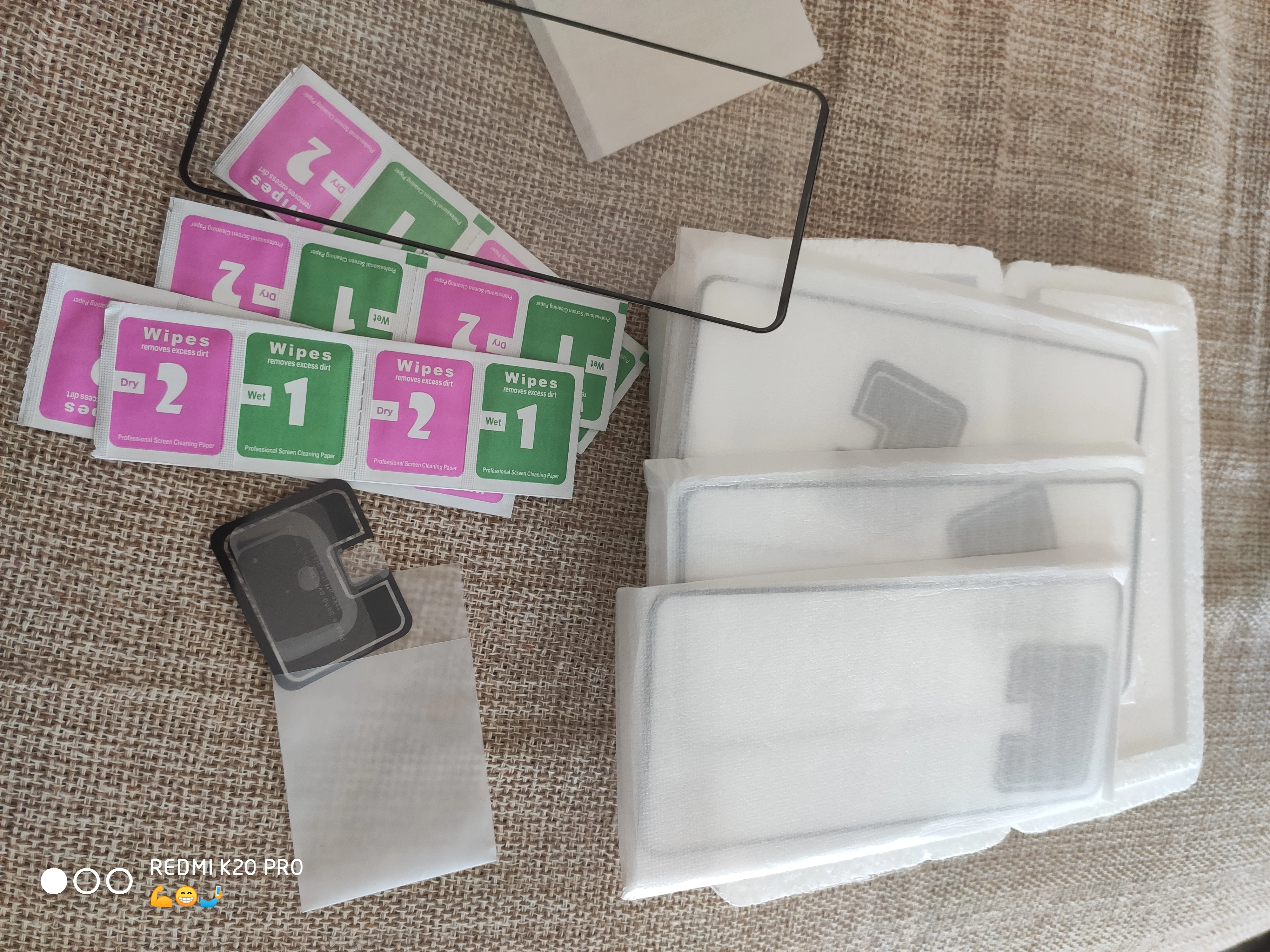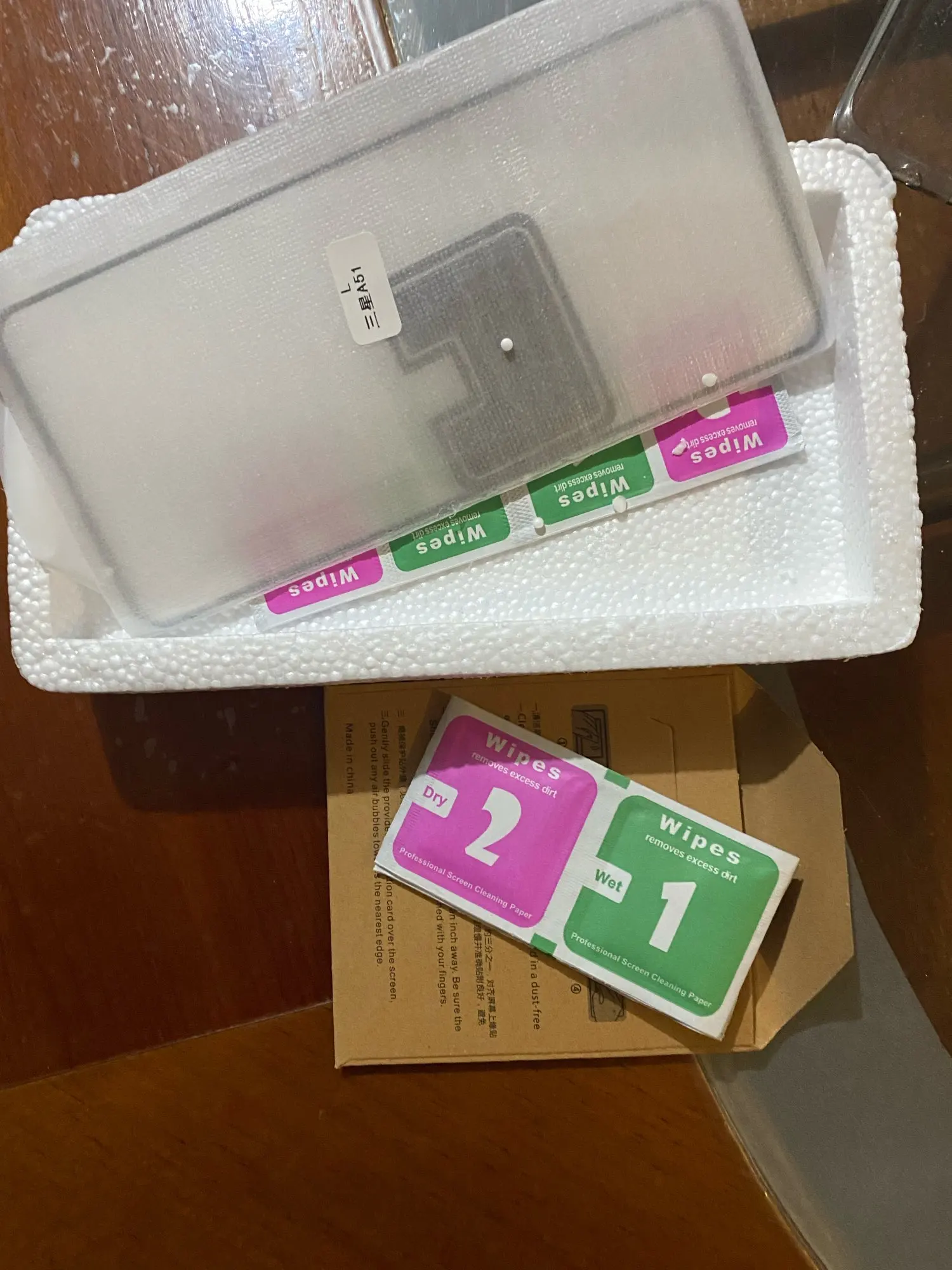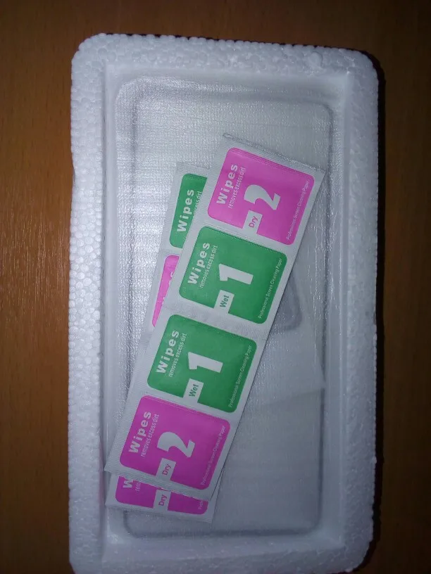В наборе со стёклами были салфетки влажные и сухие. Упакованы надёжно. Время за которое стёкла приехали к сожалению не помню. Вобщем я остался доволен)