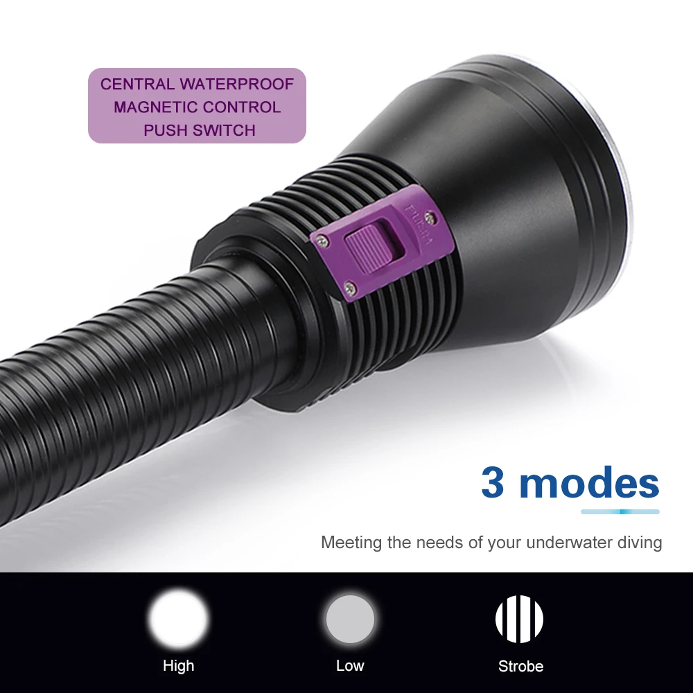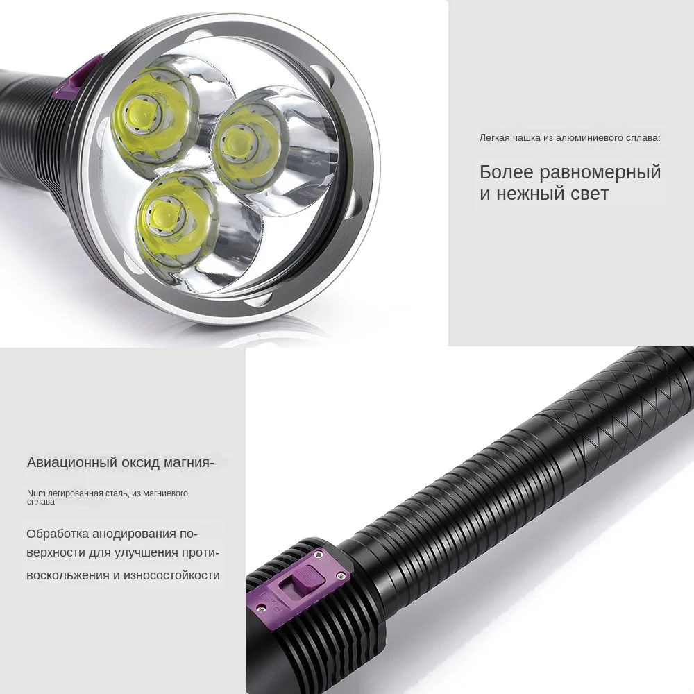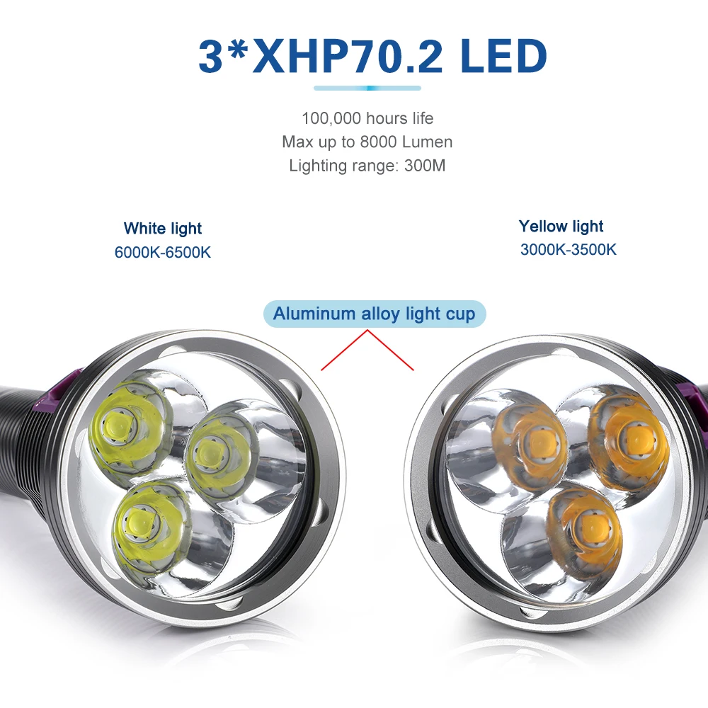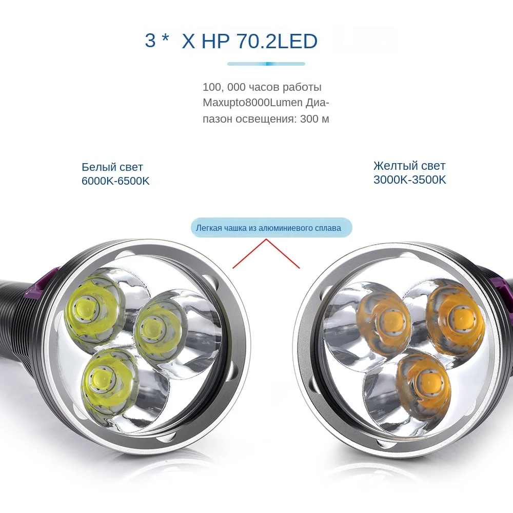 SUPER супер яркий светильник для дайвинга-фонарь для дайвинга-это стандартный тактический флэш-светильник, оснащенный 3xXHP70.2 светодиодный, максимальный выход до 15000 люменов, обеспечивает потрясающий супер яркий белый светильник под водой.