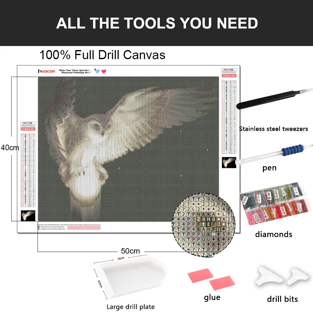 HUACAN 5d Diy Алмазная картина сова животное алмазное искусство полная дрель вышивка украшения для дома подарок