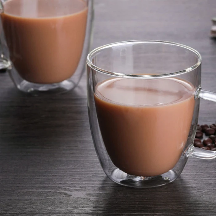 Кофейная чайная чашка, стеклянная кружка с двойными стенками для дома, офиса, питьевая вода с ручкой SNO88