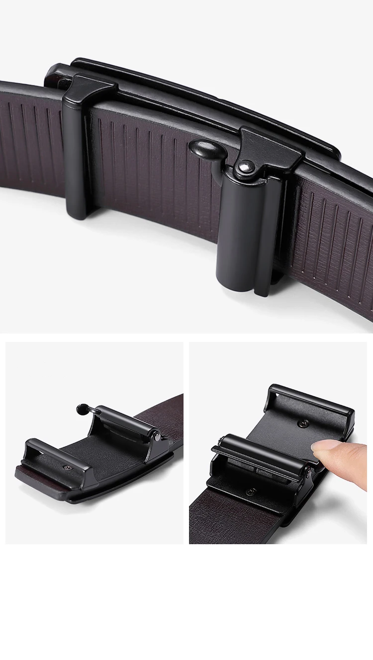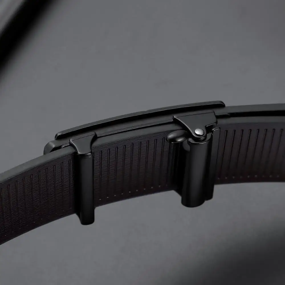 ремень хороший. кожа... кожа, непонятно, может это прессованная натуральная кожа, кромки ремня обработаны резиной. в любом случае, качество хорошее. пряжка ремень уходит под нее, внутрь, немного не был к этому готов, но удобно, не цепляешь свободным краем за все на свете. фиксация ремня очень хорошая! этот зажим держит ремень даже за те места, где нет насечек, причем держит великолепно! длина может быть надо было брать на 10см длиннее. т.к. здесь пряжка сидит прямо на самом ремне,а не край ремня наращивается автоматической пряжкой, как это сделано на большинстве моделей в нашей стране. поэтому 10 общей длины здесь поглощаются пряжкой, и если вы носите 120см и у вас он фиксируется на последние 2-3защелки, вам лучше взять 130см. в целом все хорошо. продавец долго не тянул перед отправкой. рекомендую.