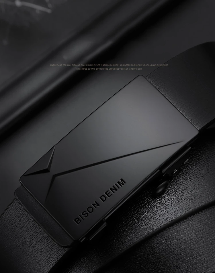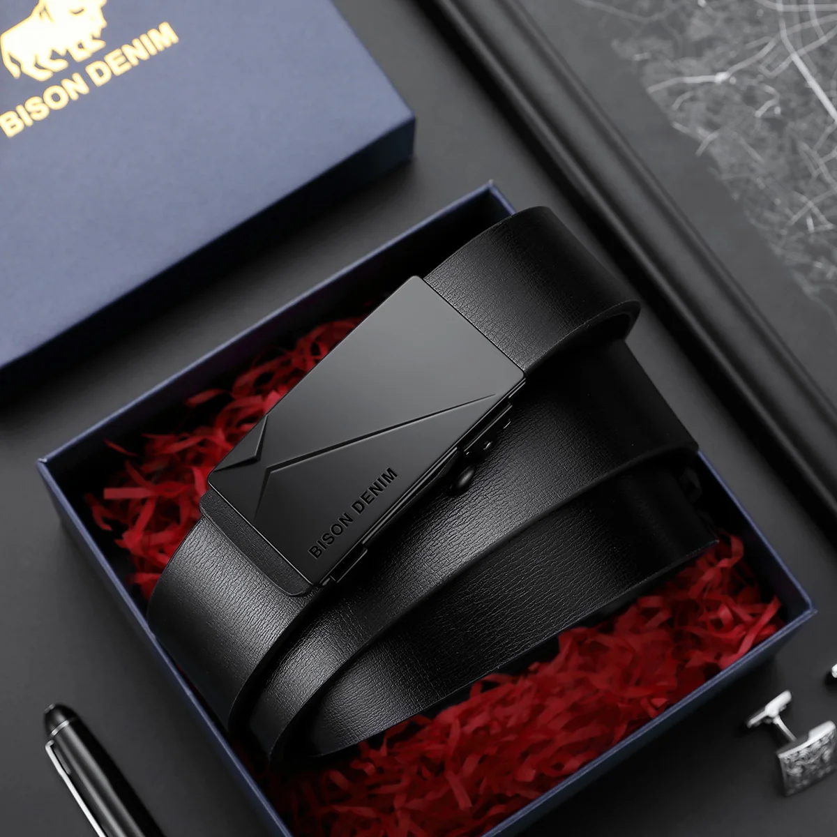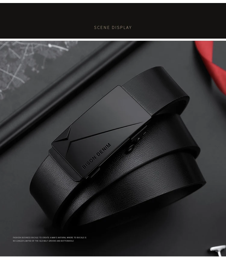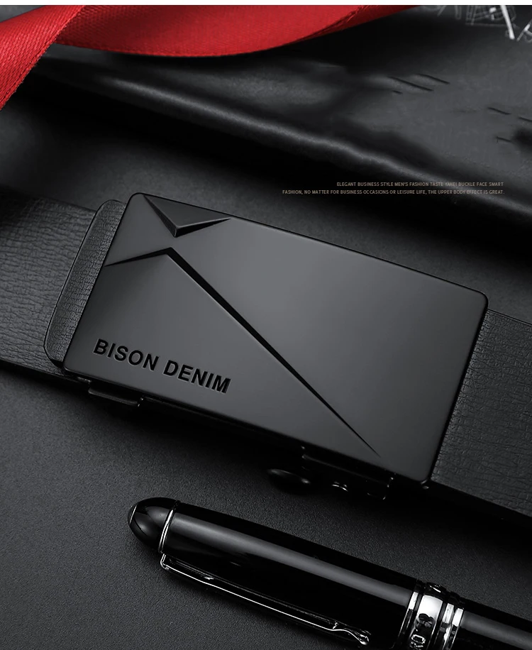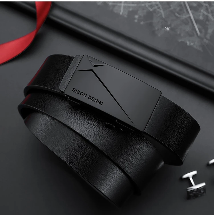 Мужской ремень из натуральной коровьей кожи BISON DENIM, черный деловой модный роскошный кожаный ремень с автоматической пряжкой из сплава, 2019