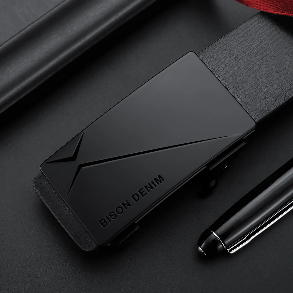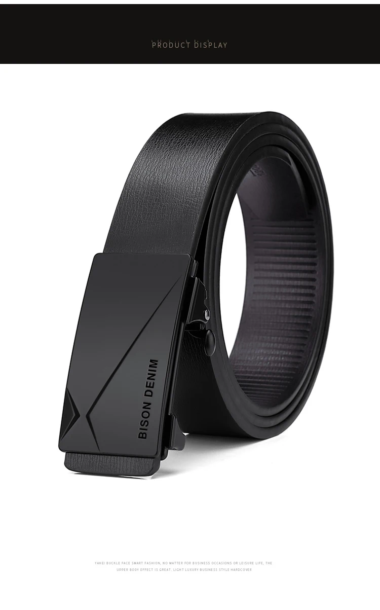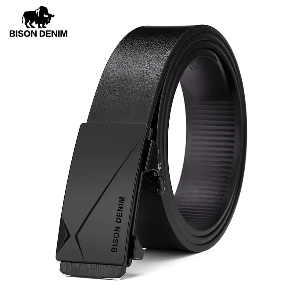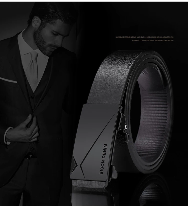 Мужской ремень из натуральной коровьей кожи BISON DENIM, черный деловой модный роскошный кожаный ремень с автоматической пряжкой из сплава, 2019