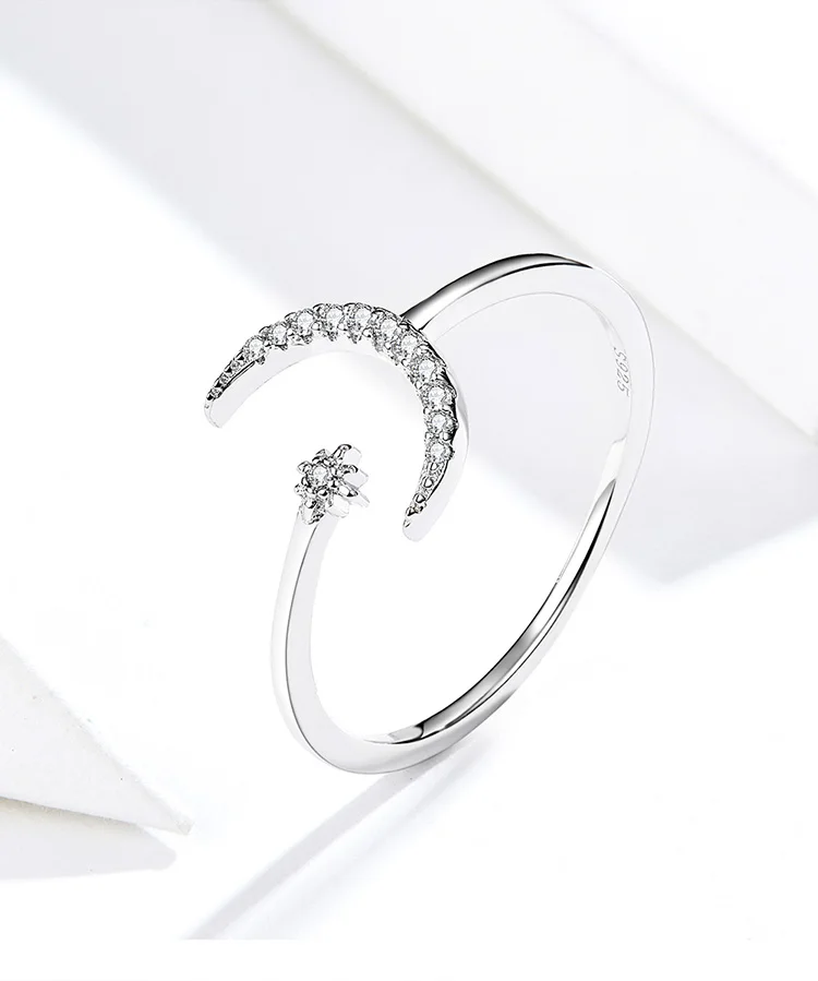 WOSTU Moon Свадебные Открытые Кольца Настоящее серебро 925 пробы дл...