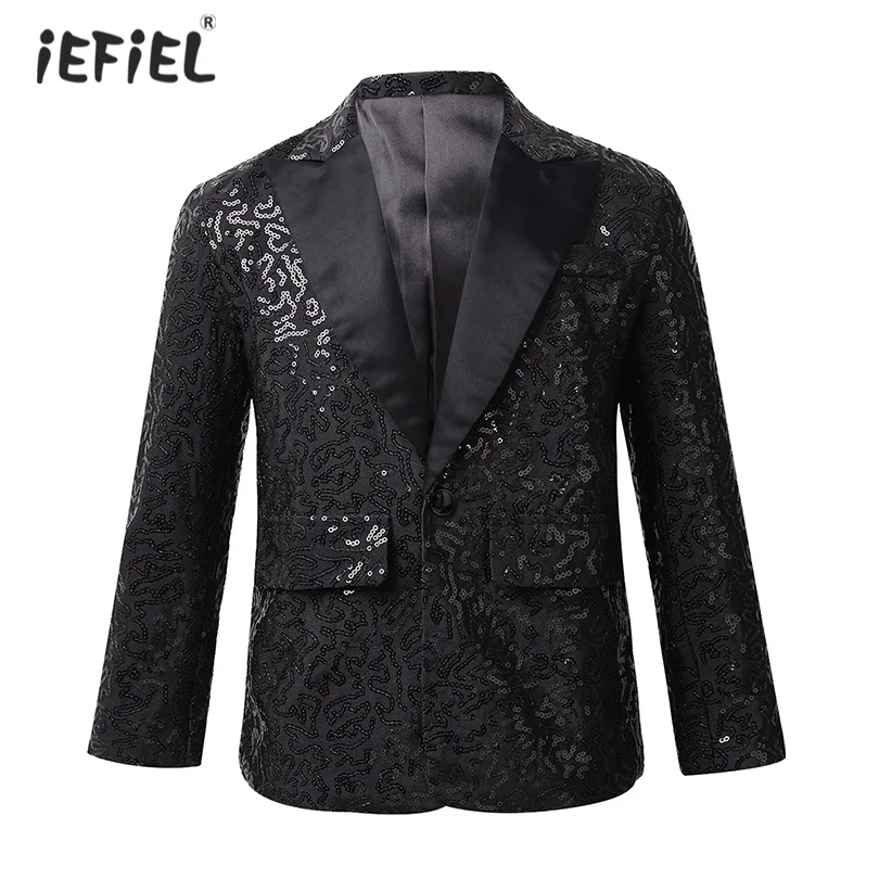 Детский официальный костюм для мальчиков, пиджак с блестками, отложным воротником и одной пуговицей, Блейзер, смокинг, Свадебный, банкетный, вечерний, сценический костюм, 2022