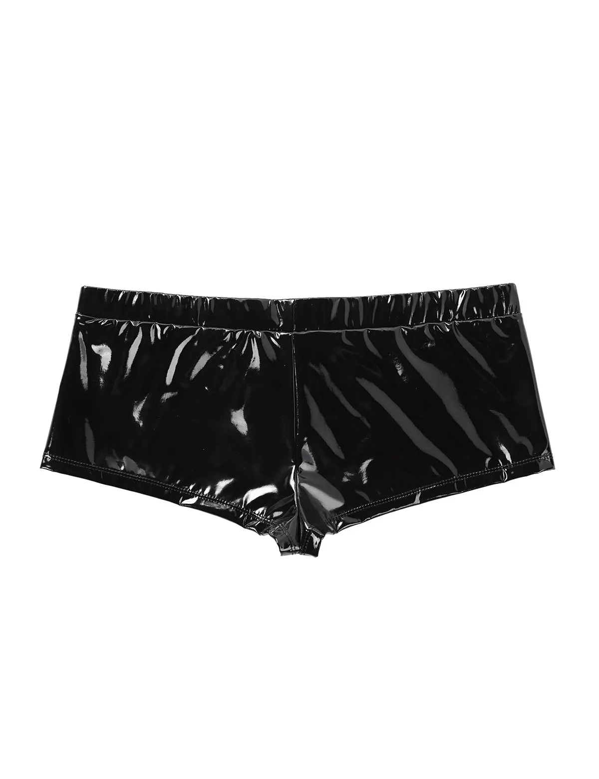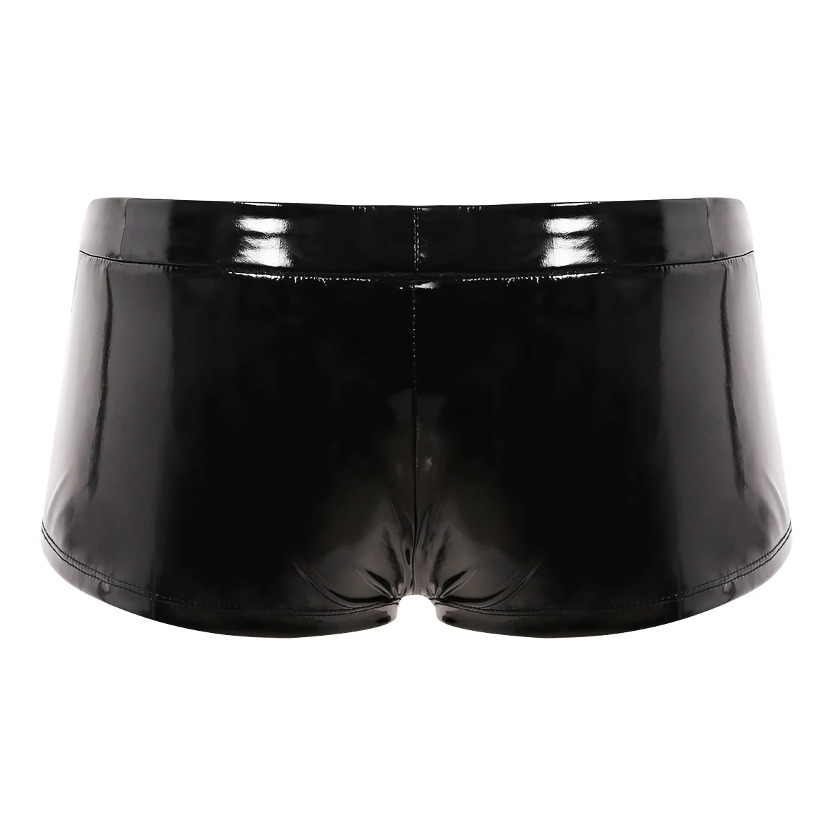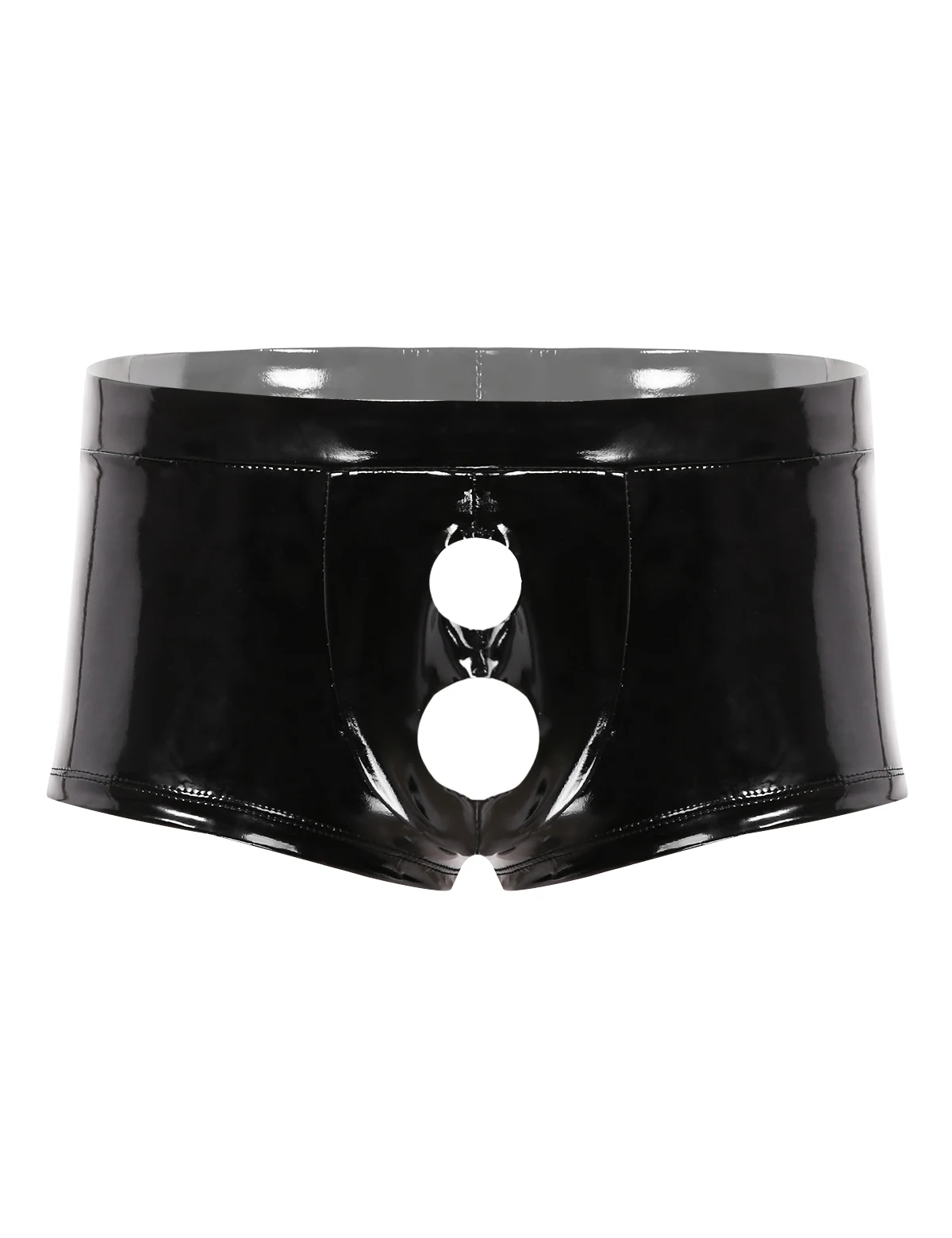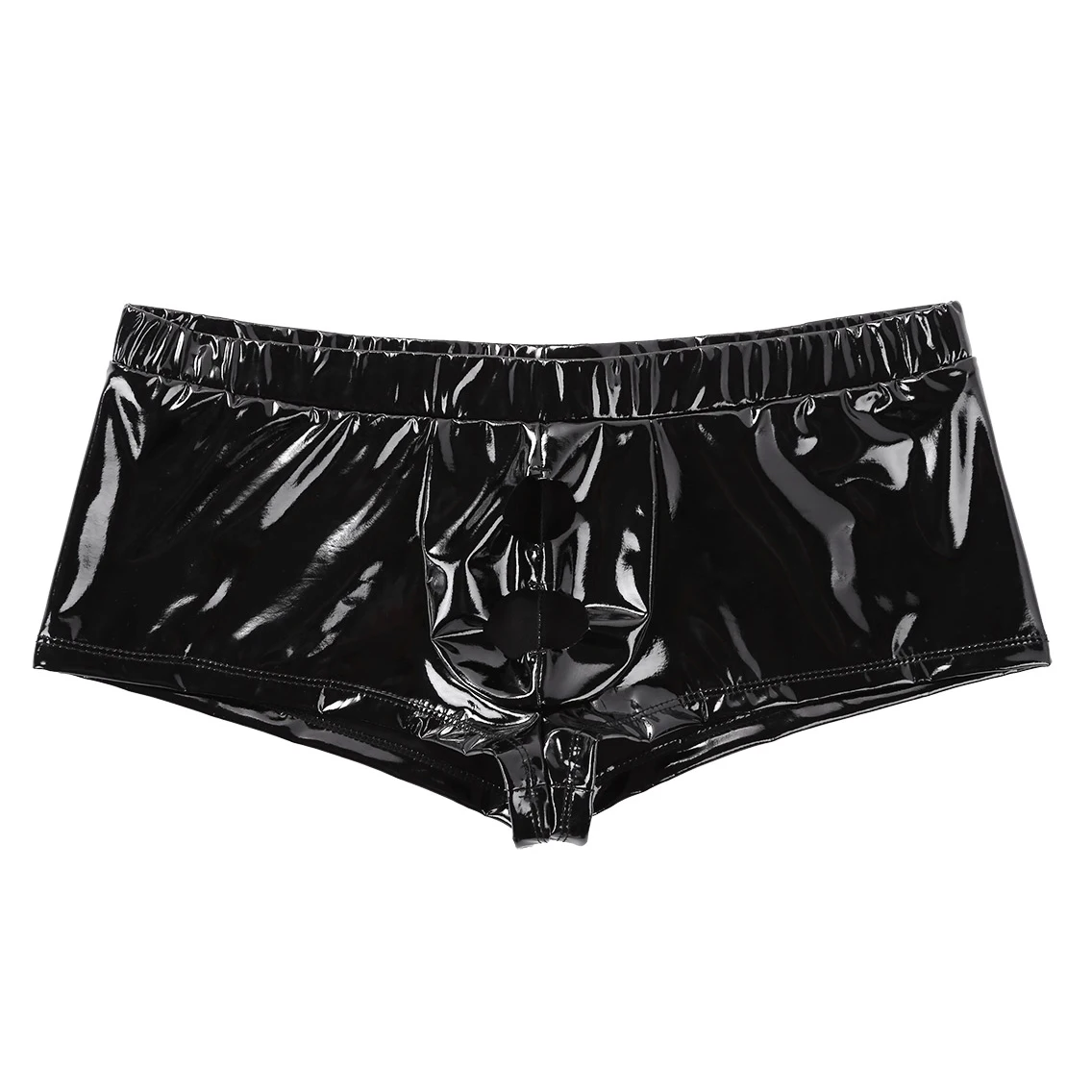 Пикантные Для мужчин влажной замок Лакированная кожа нижнее бельё для девочек с оборками низкой талии мужские боксеры с отверстиями трусы короткое бикини трусы облегающие трусики
