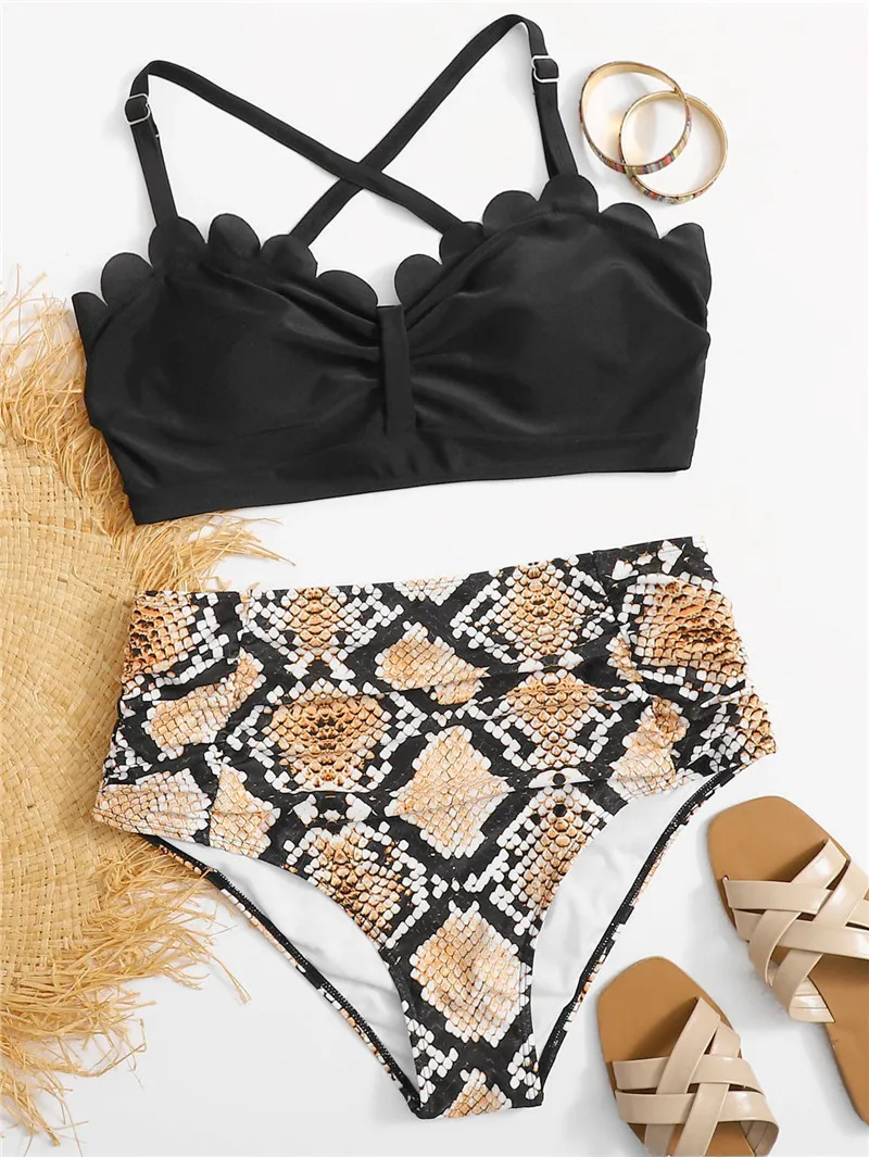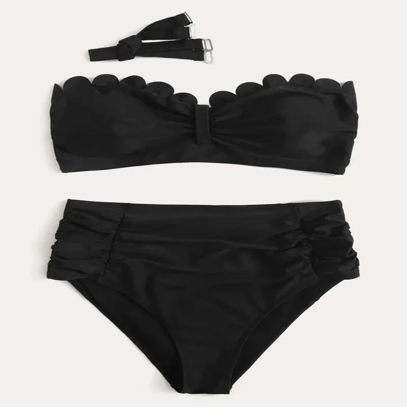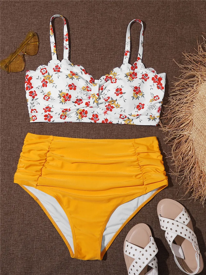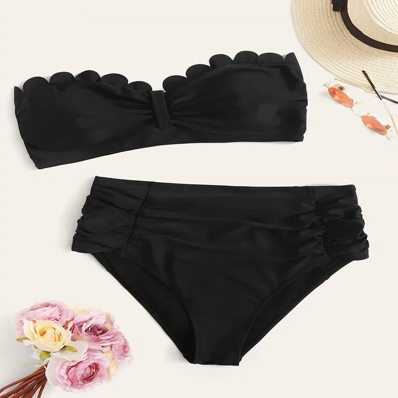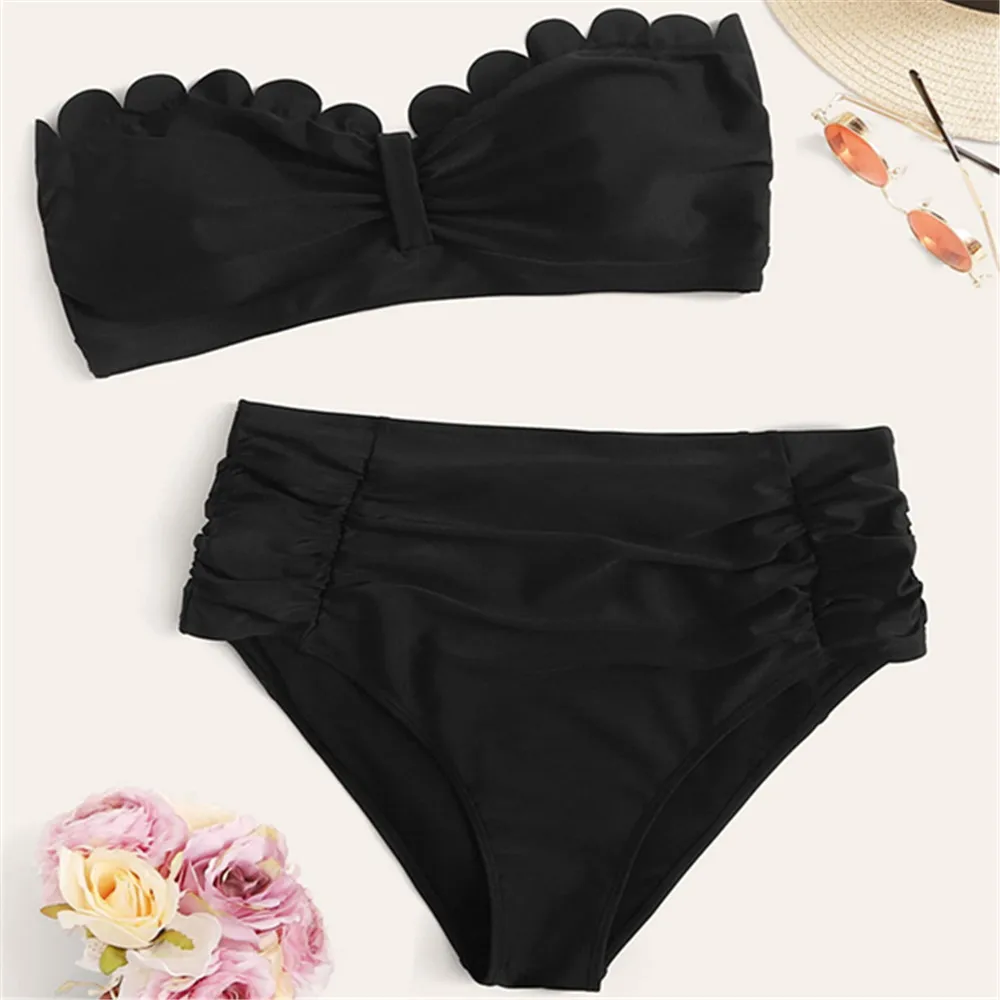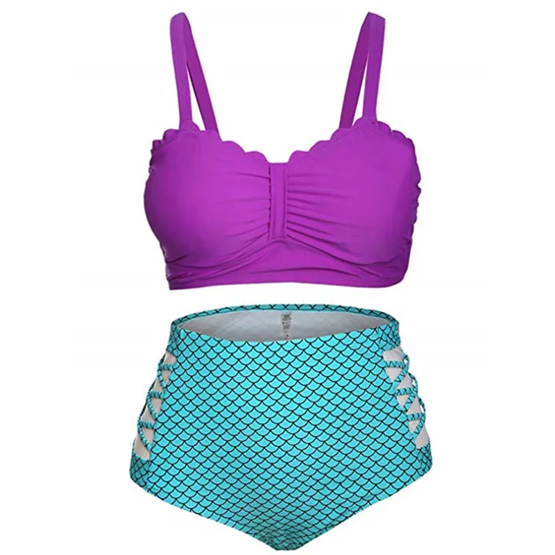 Новый костюм Русалочки из двух предметов, купальник с высокой талией, пуш-ап, Топ бандо с подкладкой, размера плюс, пляжная одежда для плавания, винтажный комплект бикини